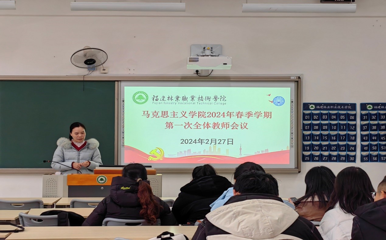 2024年2月27日上午,马克思主义学院于江南校区教学楼201组织召开2024春季学期第一次全体教师会议,会议由马克思主义学院院长邹小燕主持,院党委副书记严绍裕出席会议,全体思想政治理论课教师参加。