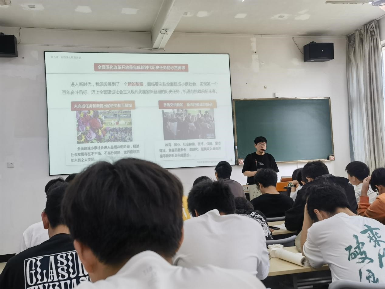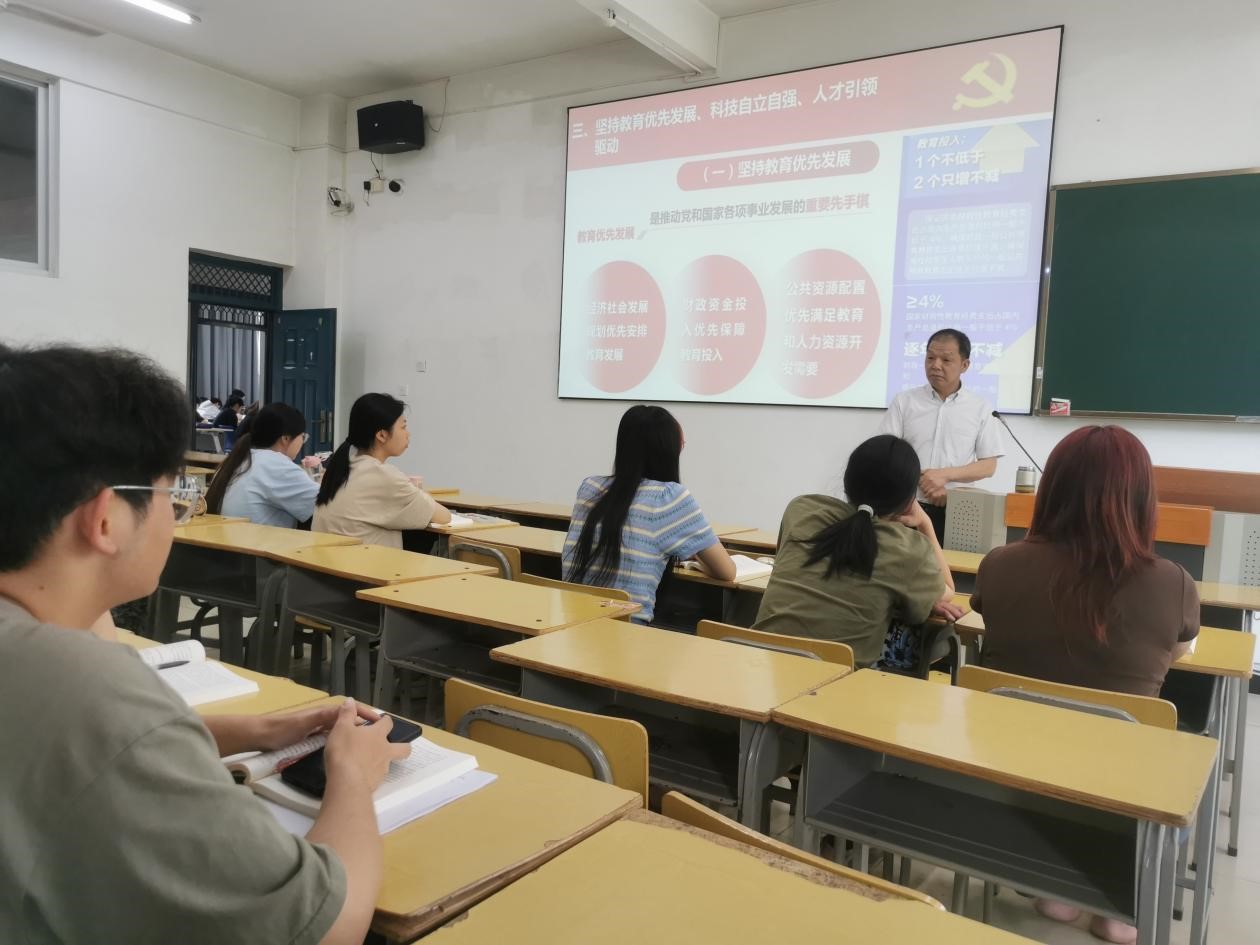 听课结束后,刘文开院长以“教育强国建设为中国式现代化强基赋能”为题,与听课班级学生进行了交流,希望同学们要以前所未有的历史紧迫感、使命感和责任感认真学习,担当起中华民族伟大复兴的时代重任。