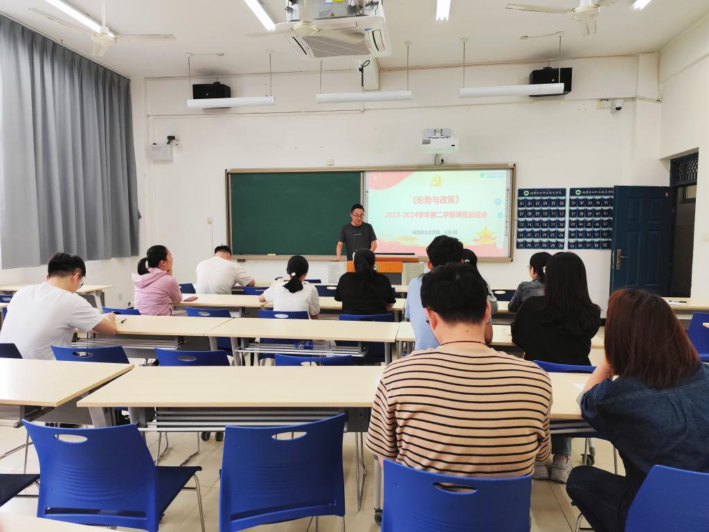 为了更好地完成教研室各项教学任务,加强“形势与政策”课程建设,在马克思主义学院的指导和安排下,6月4日下午,“形势与政策”课教研室举行2023-2024学年第二学期课程总结会,教研室全体教师参加,会议由教研室主任苏朋朋主持。