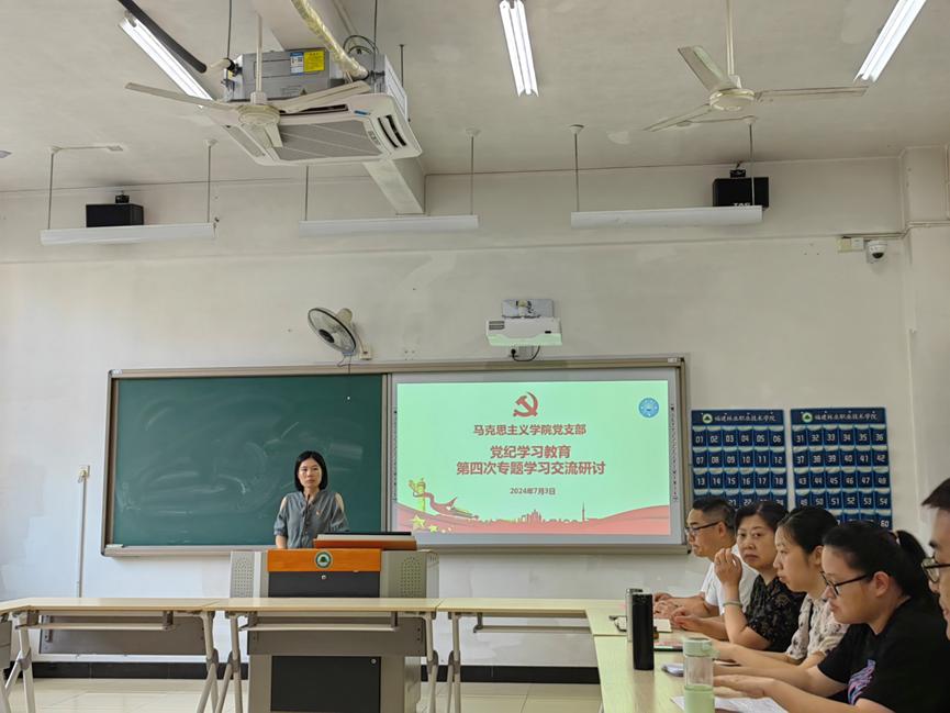 7月3日下午,马克思主义学院党支部党纪学习教育第四次专题学习交流研讨会议在教学楼201举行,支部全体党员通过认真学习《中国共产党纪律处分条例》(以下简称《条例》),围绕学习贯彻《条例》开展学习研讨。会议由马克思主义学院党支部副书记陆晓莉主持。