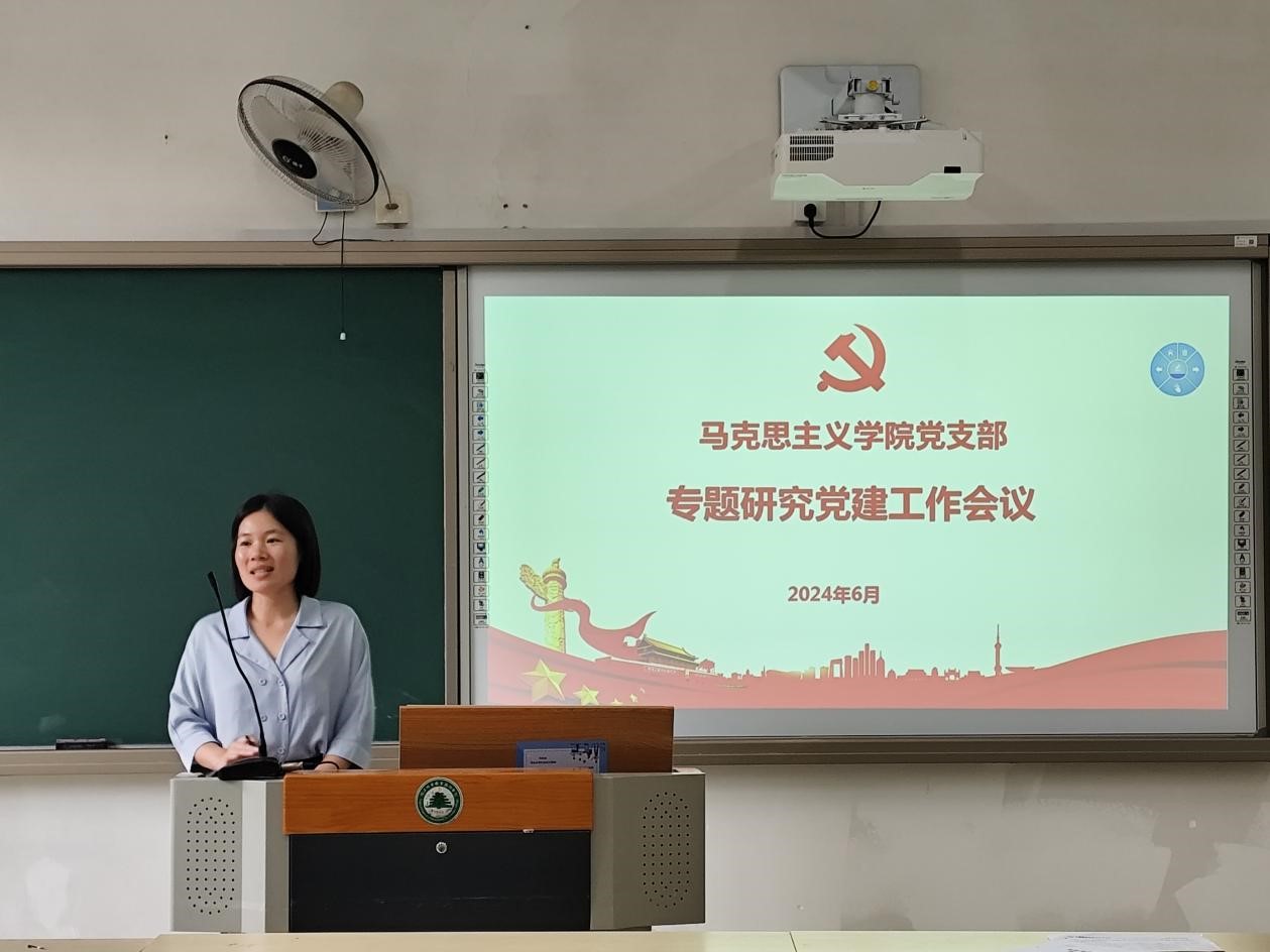 6月18日,马克思主义学院党支部召开党支部工作会议,专题研究学院党支部建设工作,会议党支部副书记陆晓莉主持,学院全体党员参加了会议。
