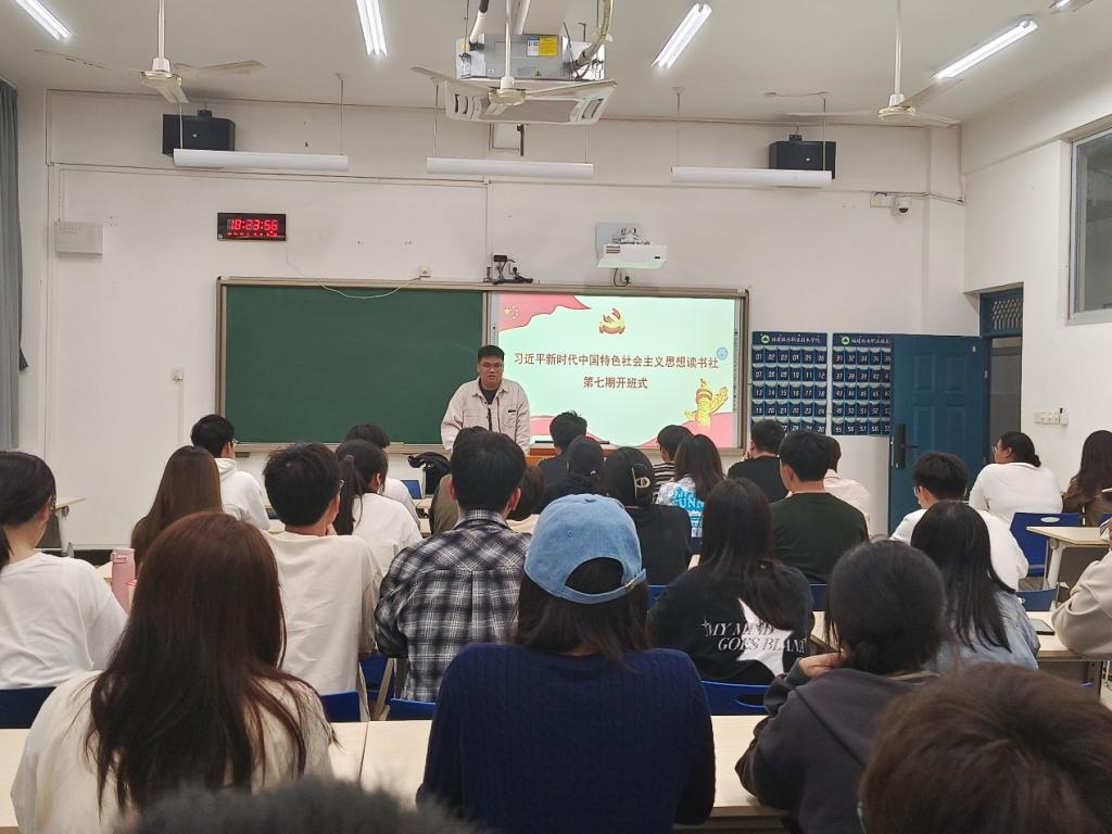 为深入学习贯彻习近平新时代中国特色社会主义思想,认真贯彻落实党的二十届三中全会精神,进一步加强青年的政治引领,帮助学生坚定马克思主义信仰,培养造就一批具有坚定理想信念、深厚爱国情怀、扎实理论功底和突出能力素质的新时代马克思主义者。11月12日下午,我校在教学楼203开展青年马克思主义者培养工程”暨“习近平新时代中国特色社会主义思想读书社”第七期见面会。马克思主义学院周偎老师以及第七期青马读书社班主任朱友城老师和第七期全体成员参加此次活动。