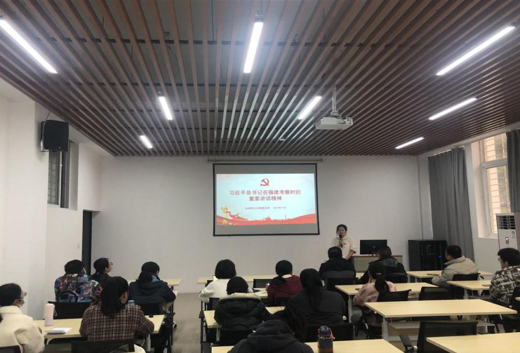 2024年11月19日,马克思主义学院党支部组织全体党员开展专题学习活动,深入学习宣传贯彻习近平总书记来闽考察时的重要讲话精神,锚定前行方向,谋划实干举措。