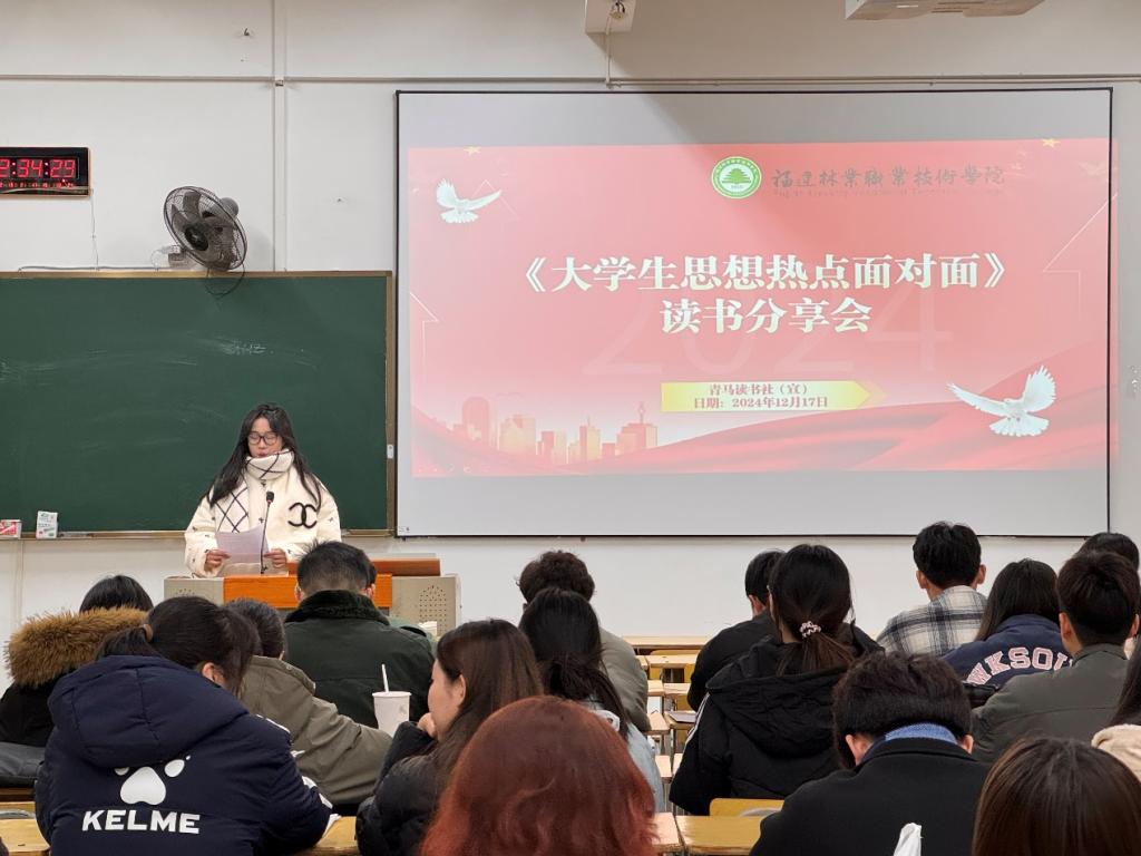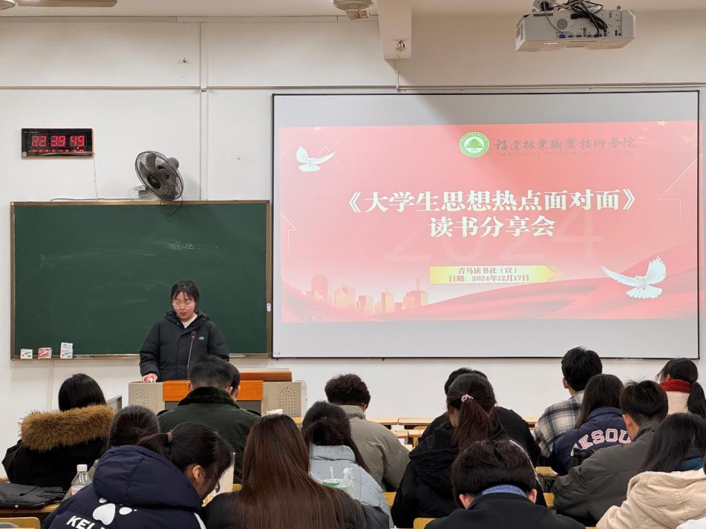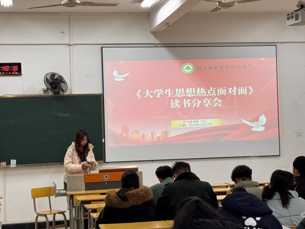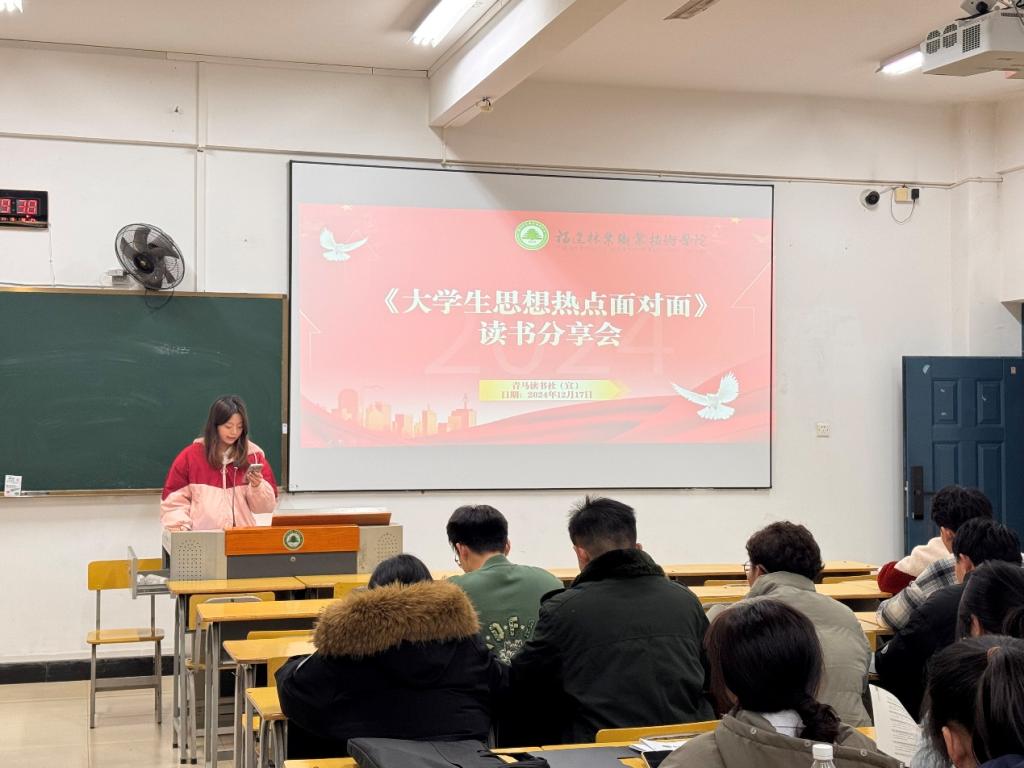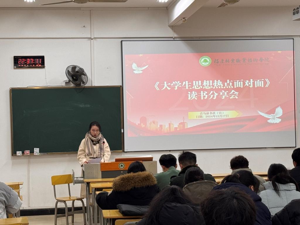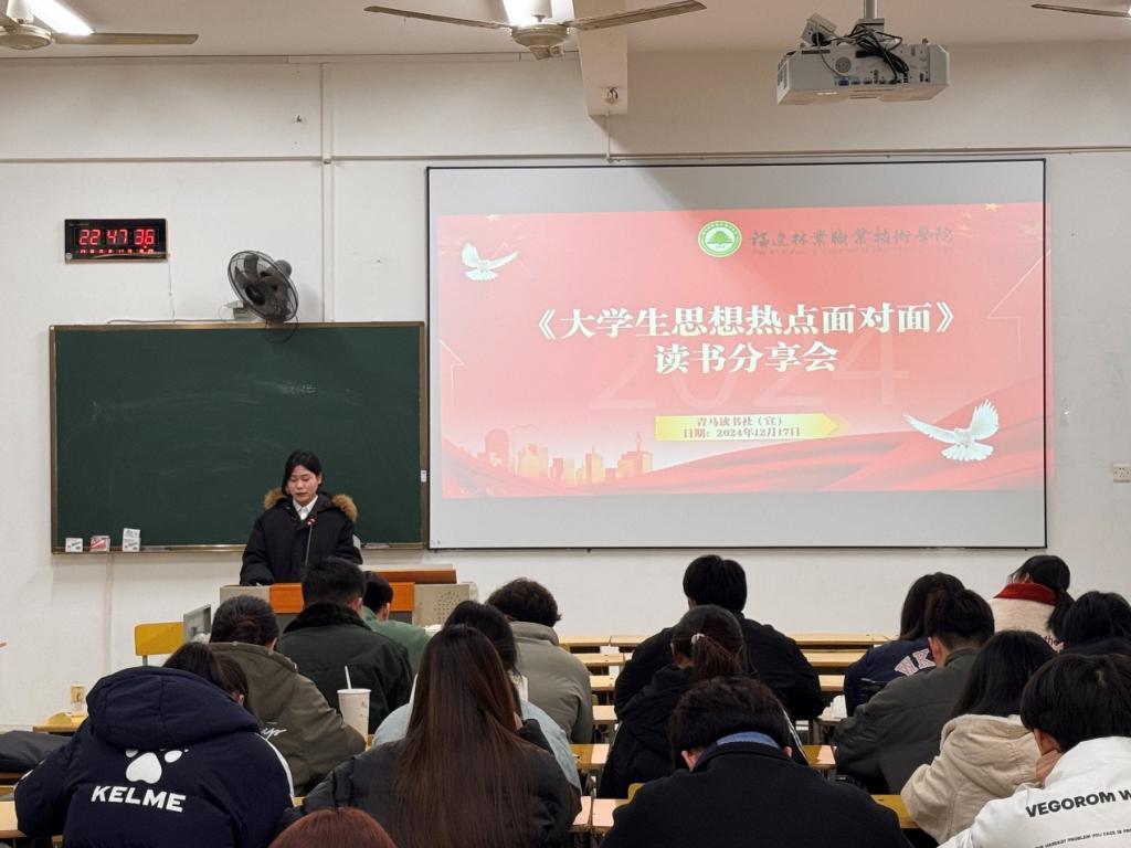 习近平总书记指出:“向书本学习,是丰富知识、增长才干的重要途径。”2024年12月17日,读书社围绕《大学生思想面对面》举办了一场精彩的读书分享。学员们共同探讨了如何在新时代背景下,将理论知识转化为实践行动,为实现个人梦想和国家发展贡献青春力量。