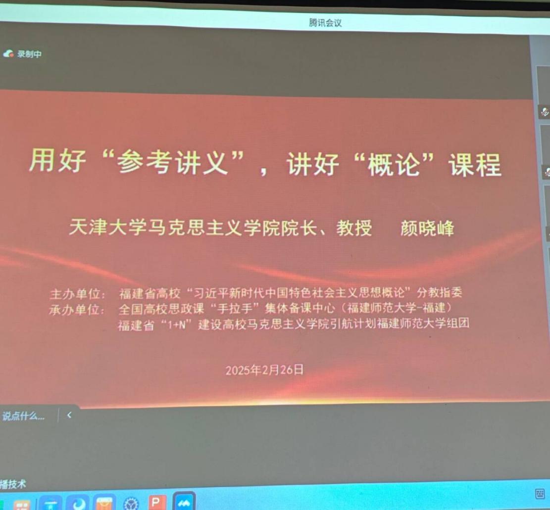 为进一步深入学习贯彻党的二十大精神、党的二十届三中全会精神,全面贯彻落实习近平新时代中国特色社会主义思想进教材、进课堂、进头脑要求,上好“习近平新时代中国特色社会主义思想概论”课,2025年2月26日上午,马克思主义学院召集全体思政课教师集中线下参加由福建省《习近平新时代中国特色社会主义思想概论》分教指委组织的网络集体备课活动。