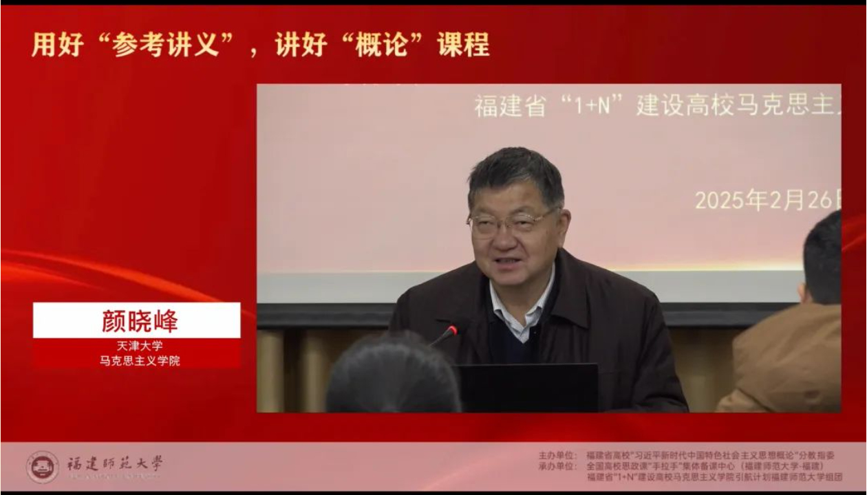 本次集体备课会邀请《习近平新时代中国特色社会主义思想概论》教材首席专家、教育部高校思政课教学总教指委副主任委员、“概论”分教指委主任委员、天津大学马克思主义学院院长颜晓峰教授作题为“用好‘讲义’,讲好‘概论’课程”的专题辅导。