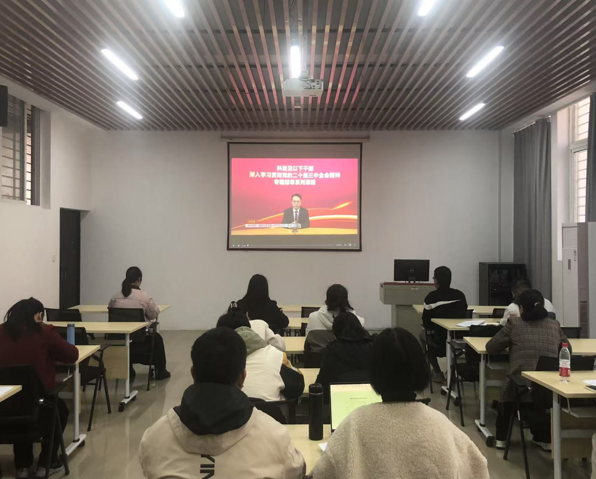 根据中共中央组织部、中共中央宣传部、中共中央党校(国家行政学院)《关于开展科级及以下干部、党员学习贯彻党的二十届三中全会精神培训的通知》要求,深入学习习近平总书记在党的二十届三中全会上的重要讲话精神,深刻领会和把握进一步全面深化改革的主题、重大原则、重大举措、根本保证,提升党员的理论素养与实践能力,2024年12月17日,马克思主义学院在行政楼一楼马院教研室开展了《深入学习贯彻习近平总书记关于全面深化改革的一系列新思想、新观点、新论断和党的二十届三中全会精神》专题培训,此次培训由中央党校(国家行政学院)研究室主任沈传亮教授主讲。