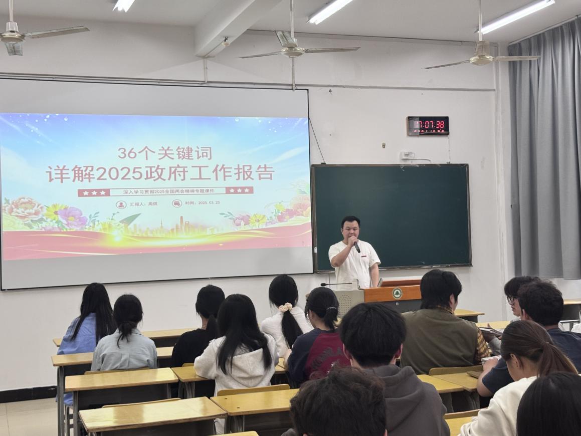 2025年,是“十四五”规划的收官之年,也是推动新时代伟大征程迈向纵深的关键之年。为深入贯彻习近平新时代中国特色社会主义思想,落实党的二十大和二十届二中、三中全会精神,2025年3月25日,福建林业职业技术学院习近平新时代中国特色社会主义思想读书社开展以“36个关键词,详解2025政府工作报告”为主题的学习活动,带领学员们深刻领悟两会精神。