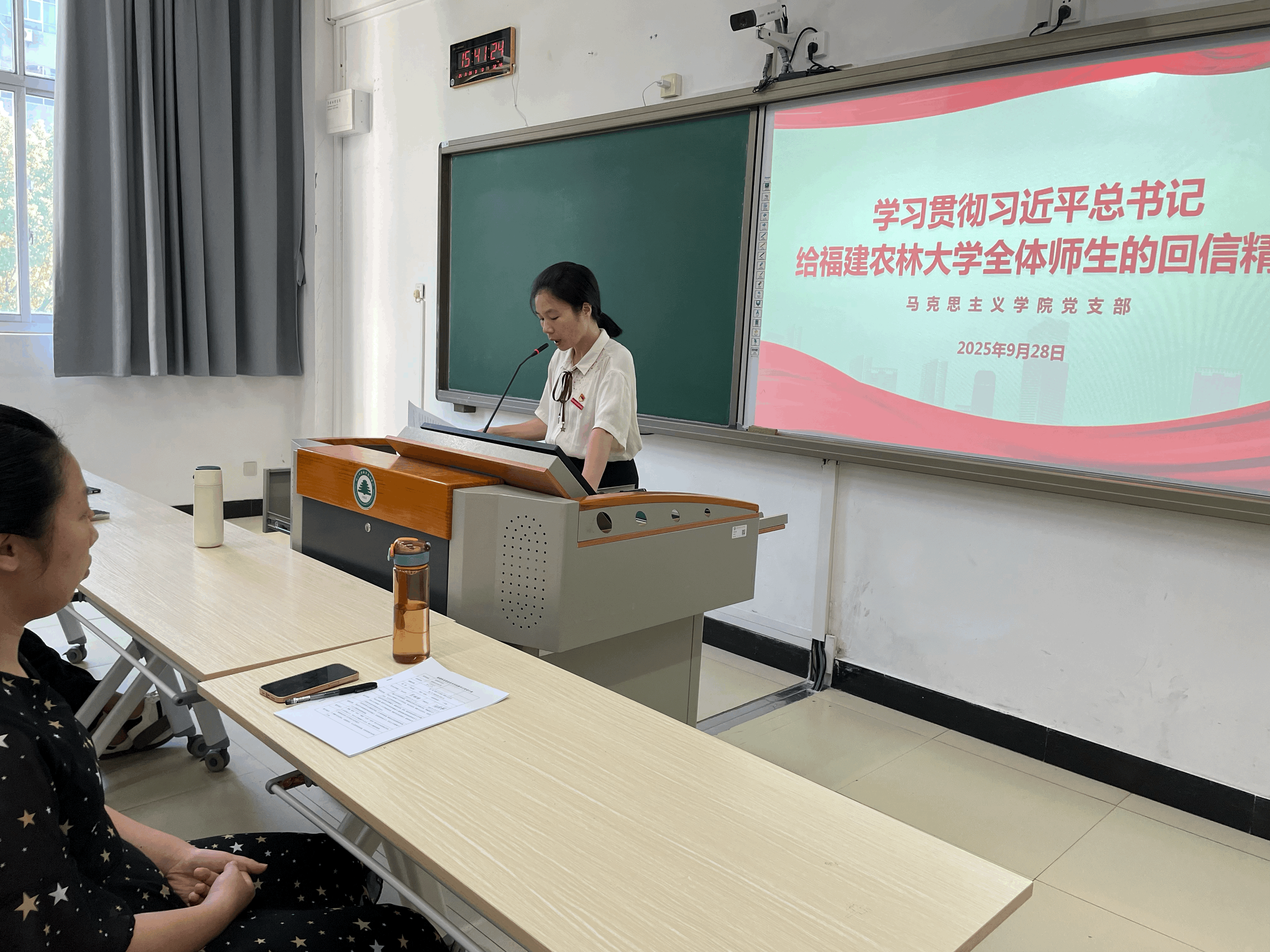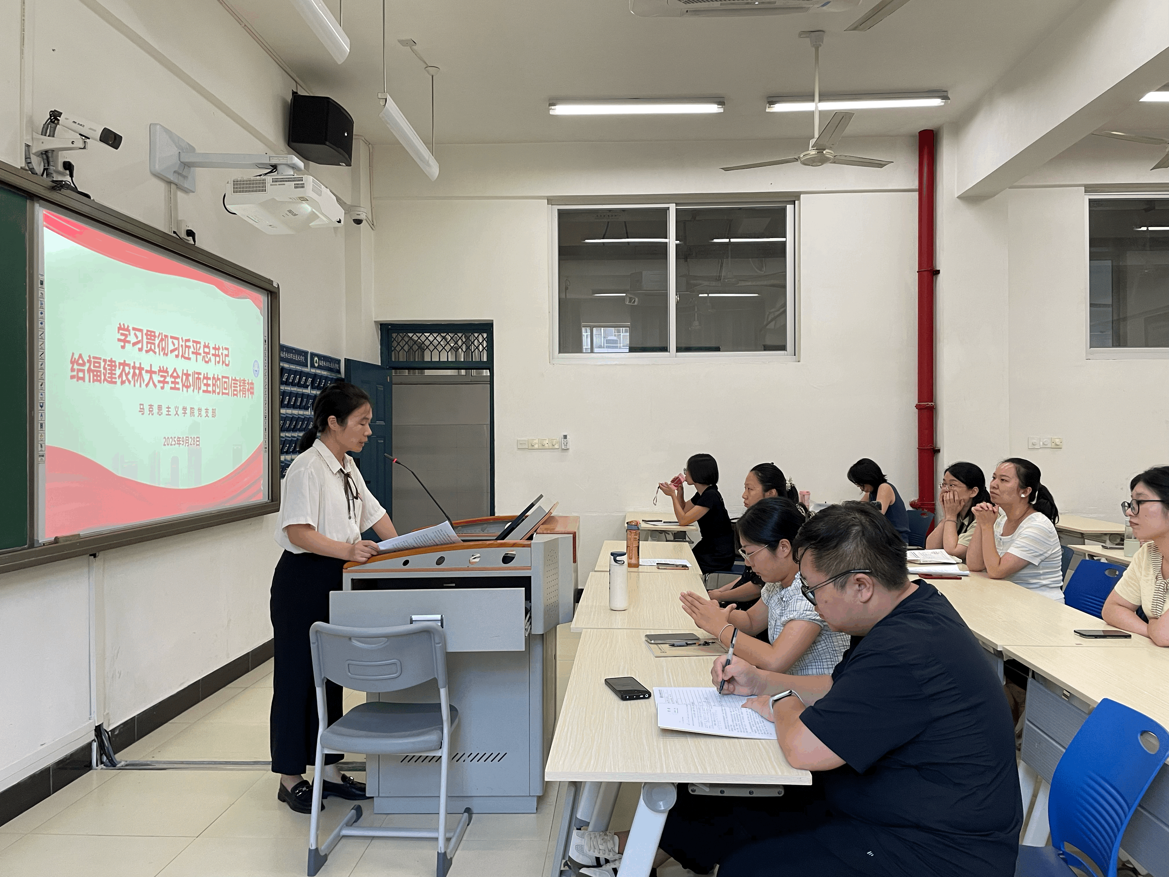 2025年9月28日,马克思主义学院在教学楼203召开专题学习会,深入学习贯彻习近平总书记给福建农林大学全体师生的回信精神,会议由马克思主义学院副院长陆晓莉主持,马克思主义学院全体教师参会。