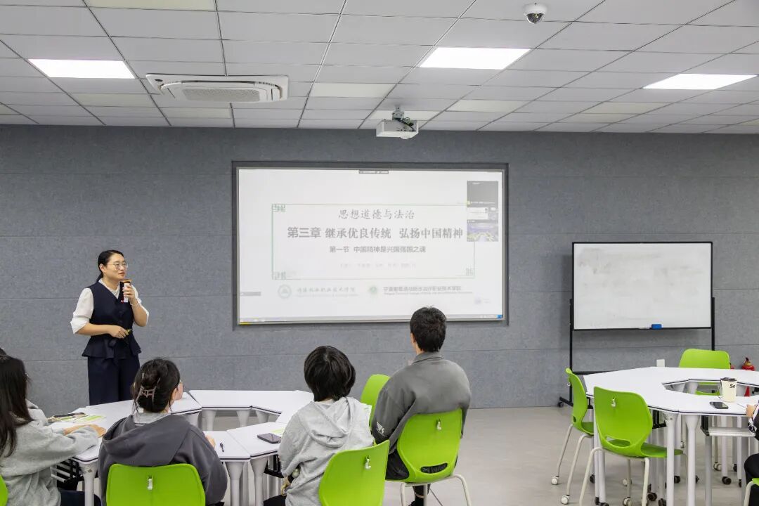 我院于蓓蓓老师和宁夏葡萄酒与防沙治沙职业技术学院关悦老师就《思想道德与法治》课程第三章第一节“中国精神是兴国强国之魂”分模块进行了穿插教学。教学过程充分运用AI技术赋能思政课堂,将闽宁融合、山海协奏的经典案例与中国精神的深刻内涵进行了有机融合,教学设计合理、衔接流畅,为大家带来一场精彩的教学盛宴。
