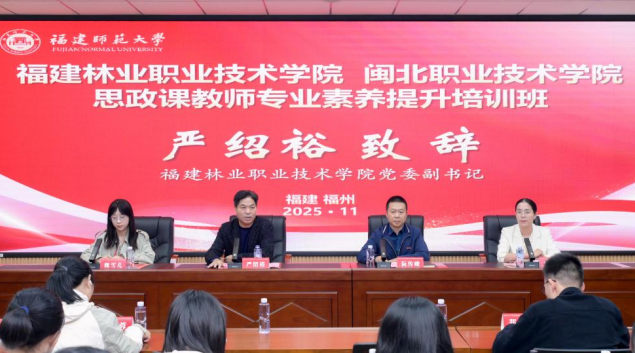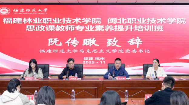 为深入贯彻学校思想政治理论课教师座谈会和新时代学校思政课建设推进会精神,提升思政课教师马克思主义理论素养与教学实践能力,推动思政课建设内涵式发展,11月14日至16日,福建林业职业技术学院思政课教师专业素养提升培训班在福建师范大学马克思主义学院顺利举办。学院党委副书记严绍裕带队,全院40名思政课教师参加研修。