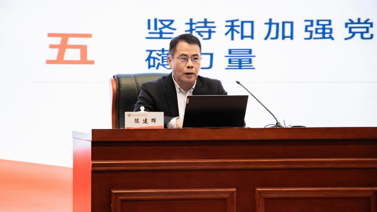 随后,陈建辉书记介绍了党的二十届四中全会的重大意义,结合福建省和福建林业职业技术学院的实际,从多个方面展开深入阐述。