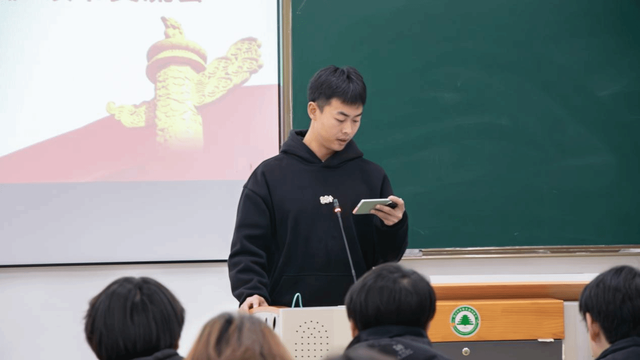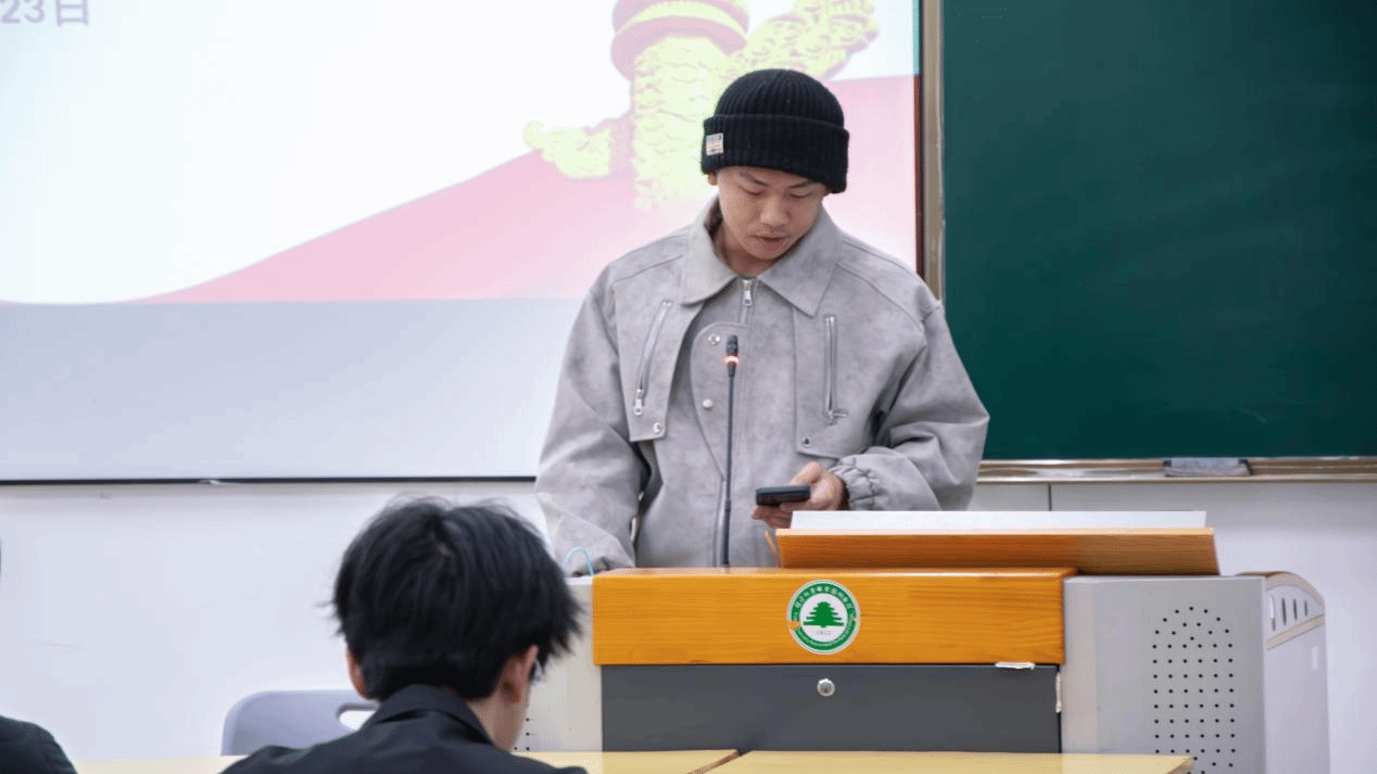 林学系的章源发分享《大学生思想热点面对面(2025版)》学习体会,认识到个人理想应融入国家发展,决心以核心价值观为引领,提升专业本领,实干担当,为民族复兴贡献青春力量。