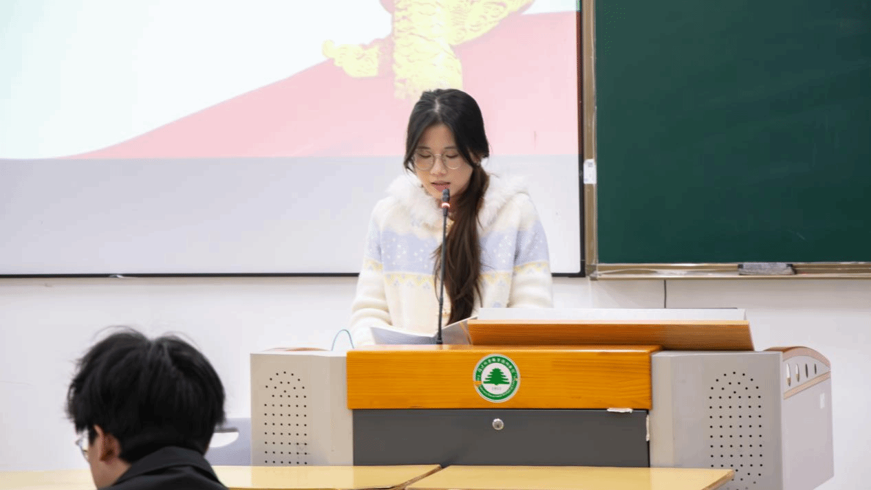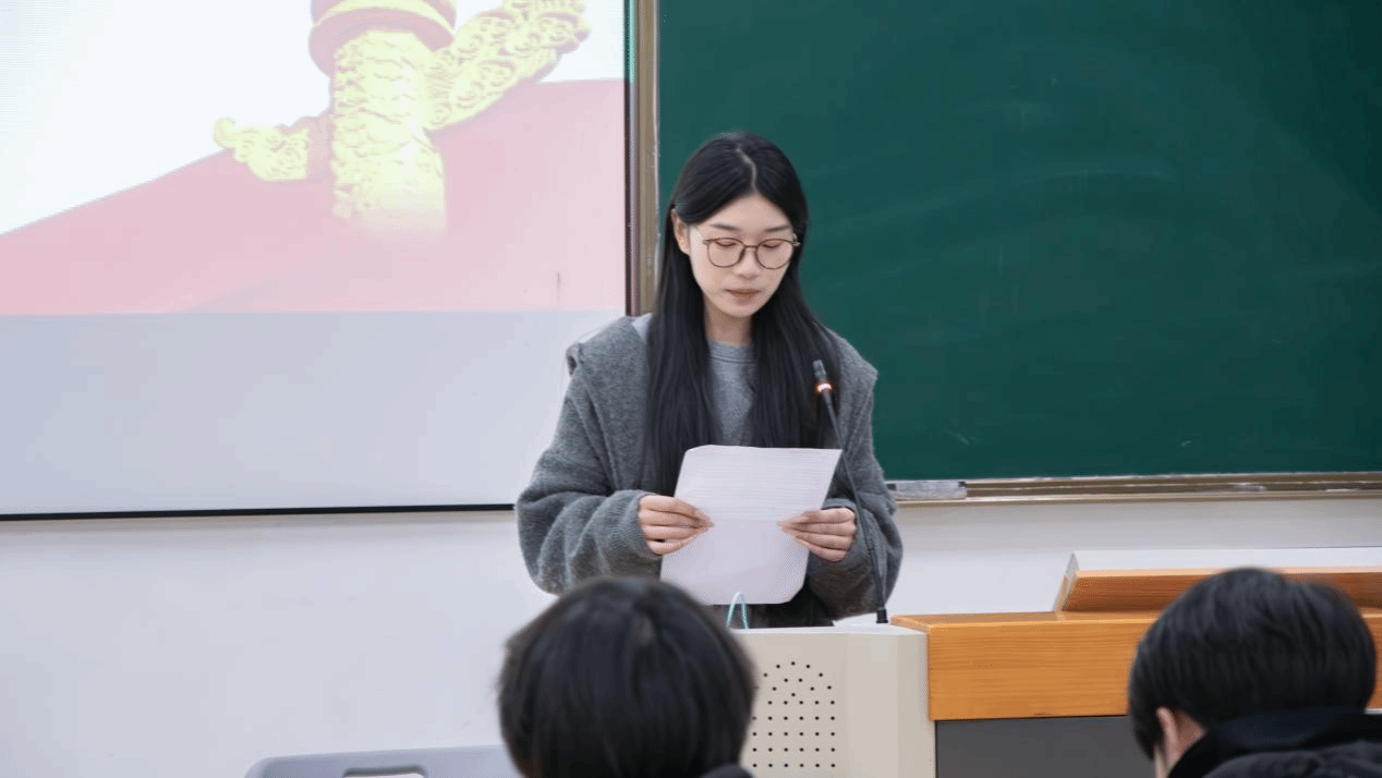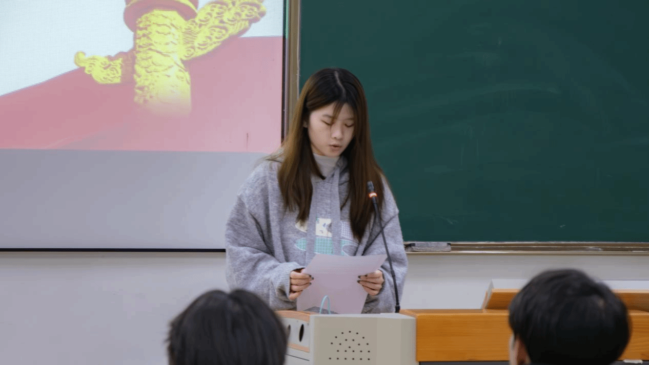 建筑工程系的黄晓怡分享读书体会,她从国家发展、新质生产力等议题中深刻理解到个人与时代同频,决心将专业知识融入时代进程,在实践中担当青年使命。