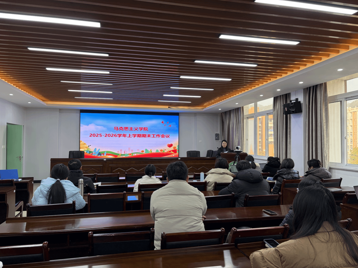 为总结2025年工作成效、部署期末各项任务及谋划下学期发展方向,1月8日上午,马克思主义学院在行政楼六楼会议室组织召开2025-2026学年上学期期末工作会议。会议由马克思主义学院副院长汪秀霞主持,马克思主义学院全体教师参会。