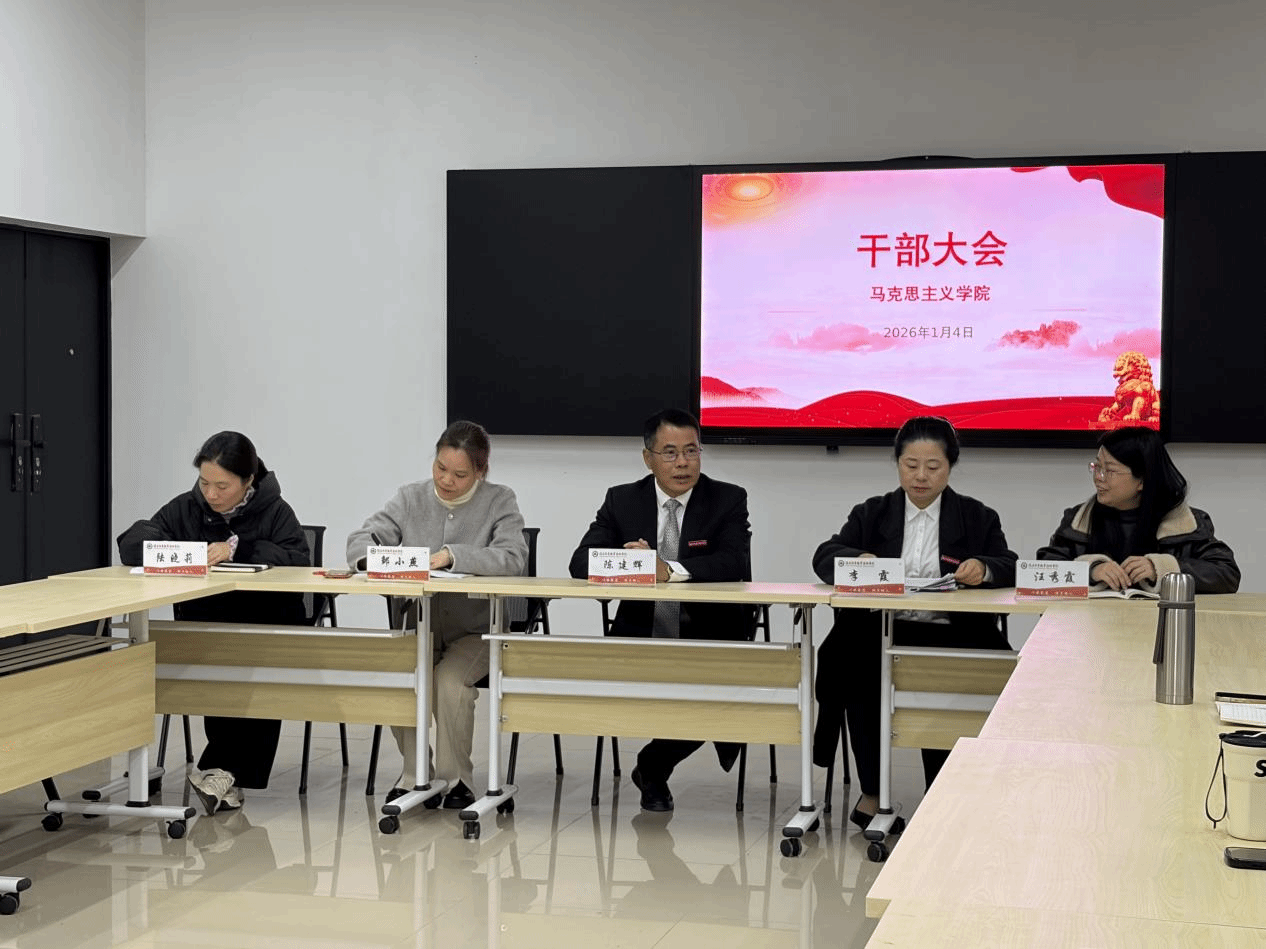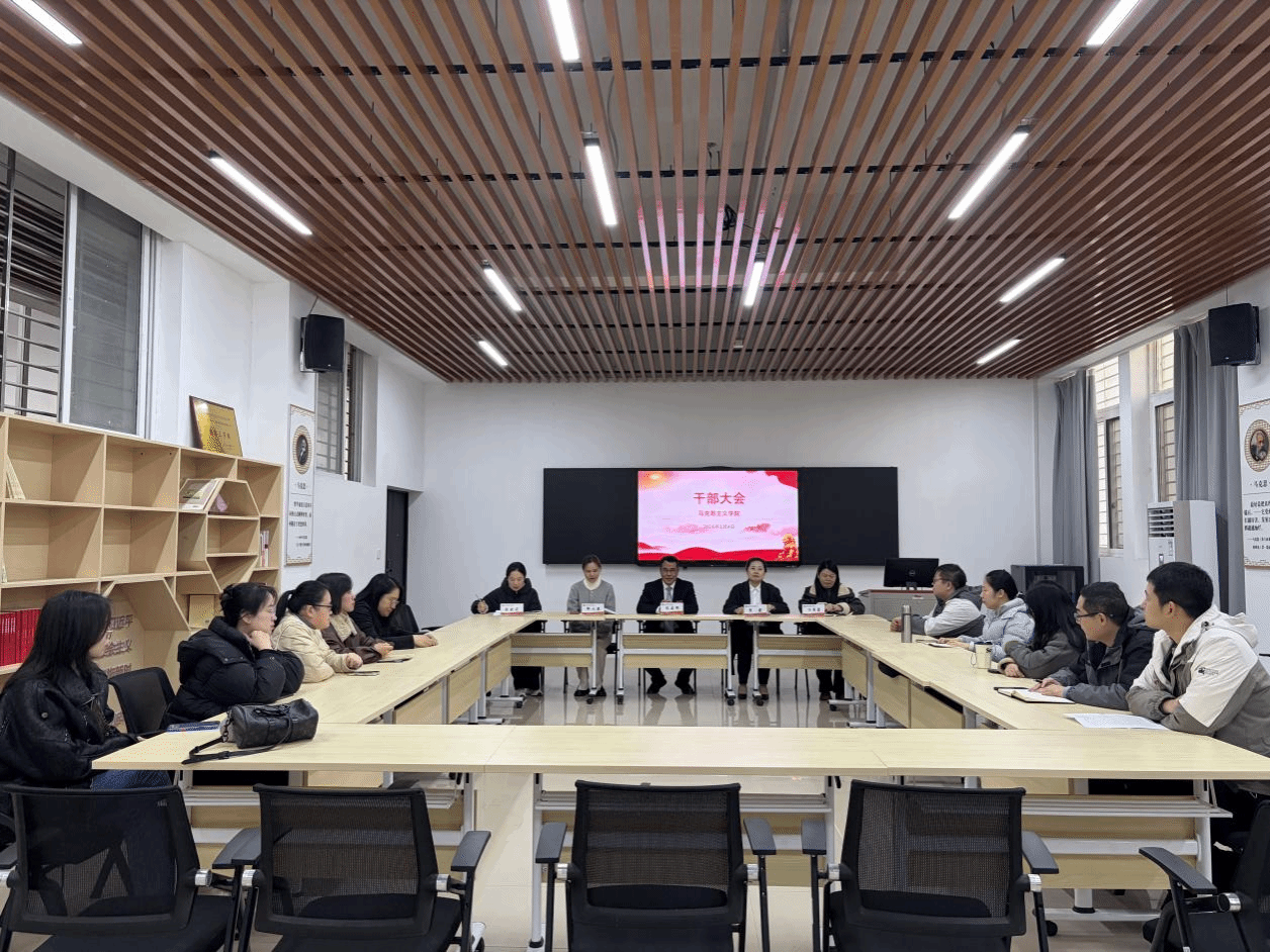 2026年1月4日下午,马克思主义学院在行政楼一楼马院研讨室召开干部任命会议。院党委书记陈建辉、院党委组织部(统战部)部长李霞、院党委宣传部部长邹小燕及马院全体教师出席会议。会议由马克思主义学院副院长陆晓莉主持。