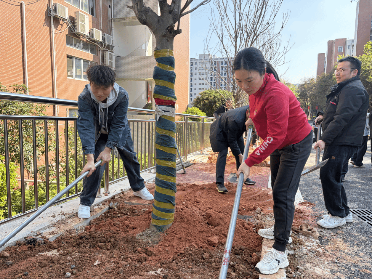 为深入践行习近平生态文明思想,厚植支部党员责任担当,响应学校号召与统一安排,3月10日下午,马克思主义学院党支部组织全体党员开展“履行植树义务,共建美丽校园”2026年义务植树节活动暨主题党日活动,大家以铁锹为笔、以苗木为墨,用实际行动为校园绘就绿色新画卷。