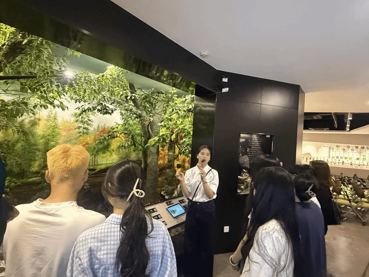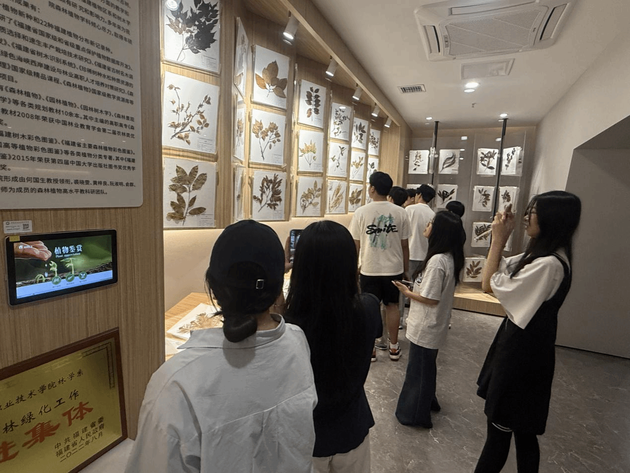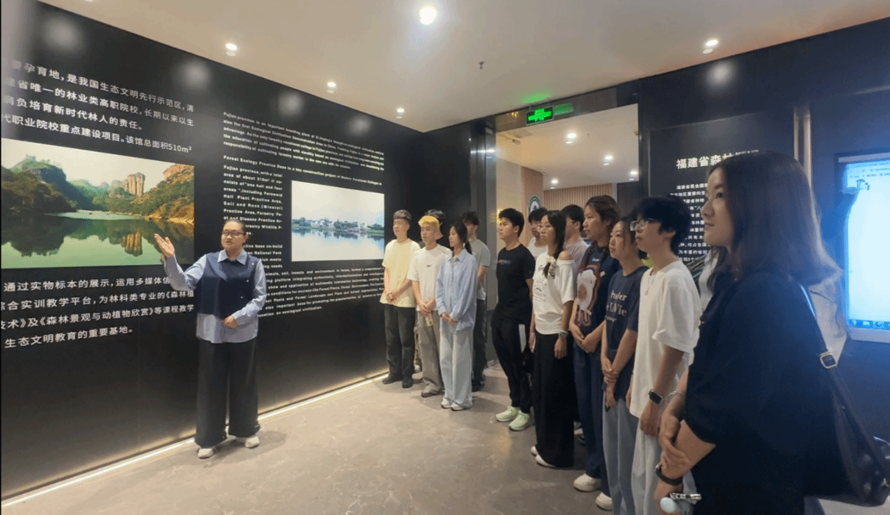 福建林业职业技术学院森林生态综合馆不仅是林学研究的重地,更是展示八闽大地生态文明建设成果的重要窗口。活动紧扣闽北林业特色与“绿水青山就是金山银山”的理念,在参观过程中,我院旅游管理专业的三位学生化身“导游”,向同学们详细介绍馆内的动植物标本、“智慧林业”数字大屏以及珍稀树种苗木情况等,同学们认真学习森林资源保护、生物多样性维护、林业碳汇发展、生态修复治理等专业知识,沉浸式感受闽北生态文明建设的丰硕成果。