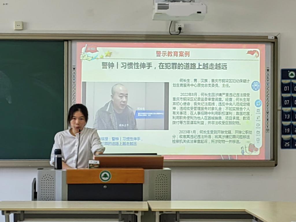 陆晓莉通过案例分析的形式,组织全体党员观看警示视频,并结合新修订的《中国共产党纪律处分条例》对案例进行讲解。《习惯性伸手,在犯罪的道路上越走越远》和《家风失守 坠入迷途》视频中何长生和许峰玮对自己违法行为进行了深入剖析,引导党员教师增强法纪意识、坚守底线、不睬红线。《这样的礼收不得》和《纪法小课·V剧场丨破除违规吃喝的“局”》主要针对变相收受礼品和违规吃喝的话题,陆晓莉结合部门实际,警示大家变相送礼败坏了廉洁师德,助长了不正之风,更有甚者在挑战法律的底线,马院党员教师要特别注意以讲课费、课题费、咨询费等变相送礼问题。希望全体党员以此次警示教育为契机,引以为戒,提高认识,严守纪律,筑牢理想信念的根基。