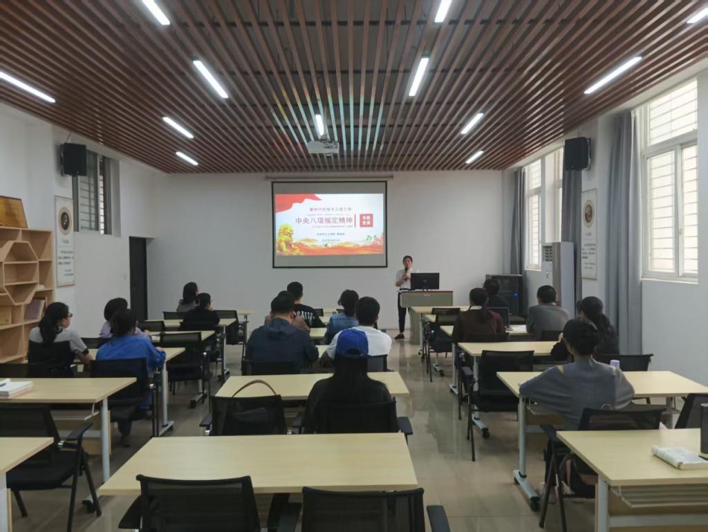 4月22日,马克思主义学院党支部在行政楼一楼马院教学研讨室开展深入贯彻中央八项规定精神学习教育专题党课,陆晓莉副书记做了《学习解读中央八项规定精神》的报告,马克思主义学院党支部全体党员参加活动。