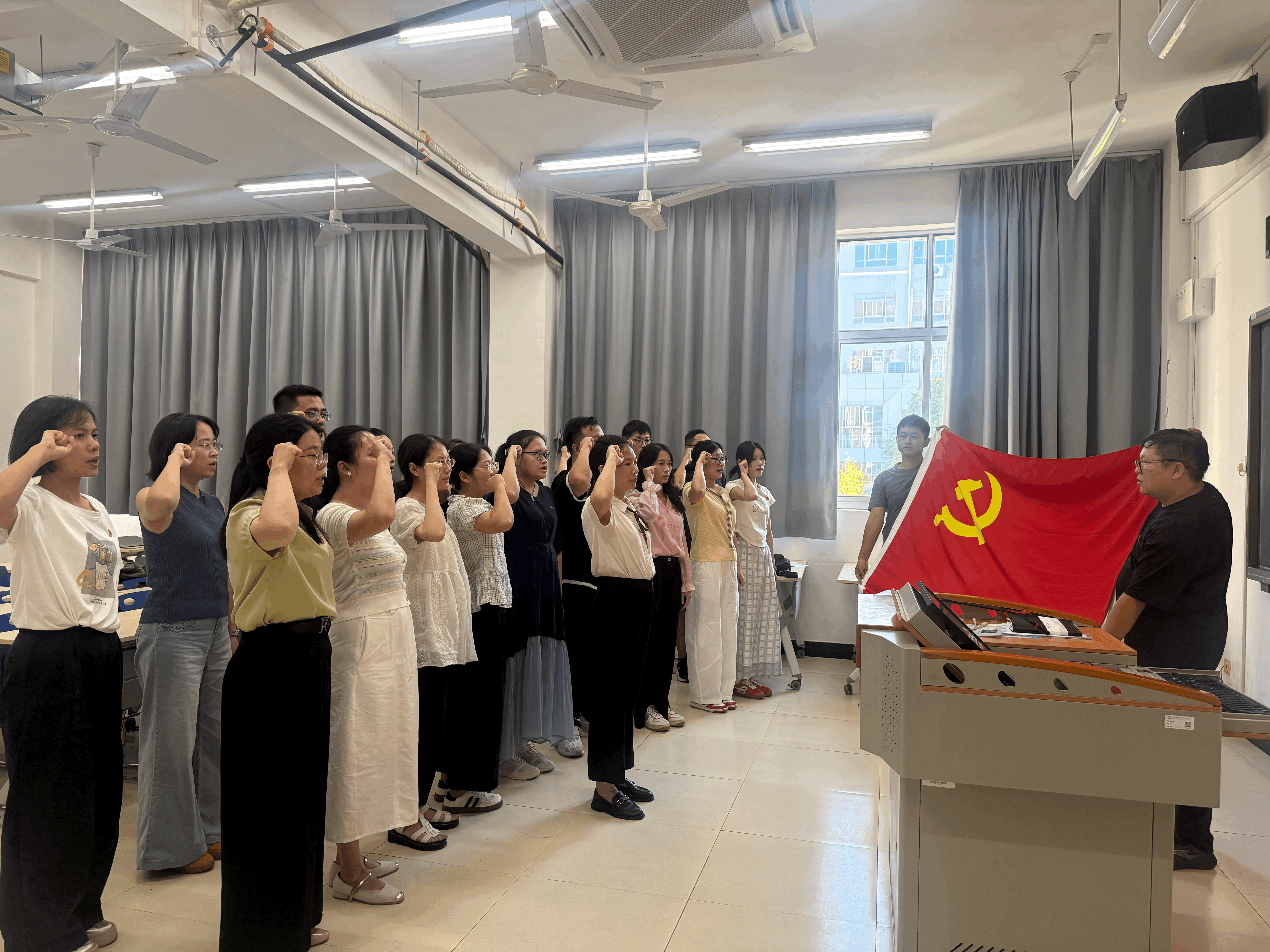 在陆晓莉的带领下,马克思主义学院全体党员整齐列队,举起右拳,庄严宣誓:“我志愿加入中国共产党,拥护党的纲领,遵守党的章程,履行党员义务,执行党的决定,严守党的纪律,保守党的秘密,对党忠诚,积极工作,为共产主义奋斗终身,随时准备为党和人民牺牲一切,永不叛党。”誓词虽短,字字千钧,神圣而豪迈,宣示着作为一名共产党员的责任感和使命感,以及为共产主义奋斗终身的坚定信念和决心。