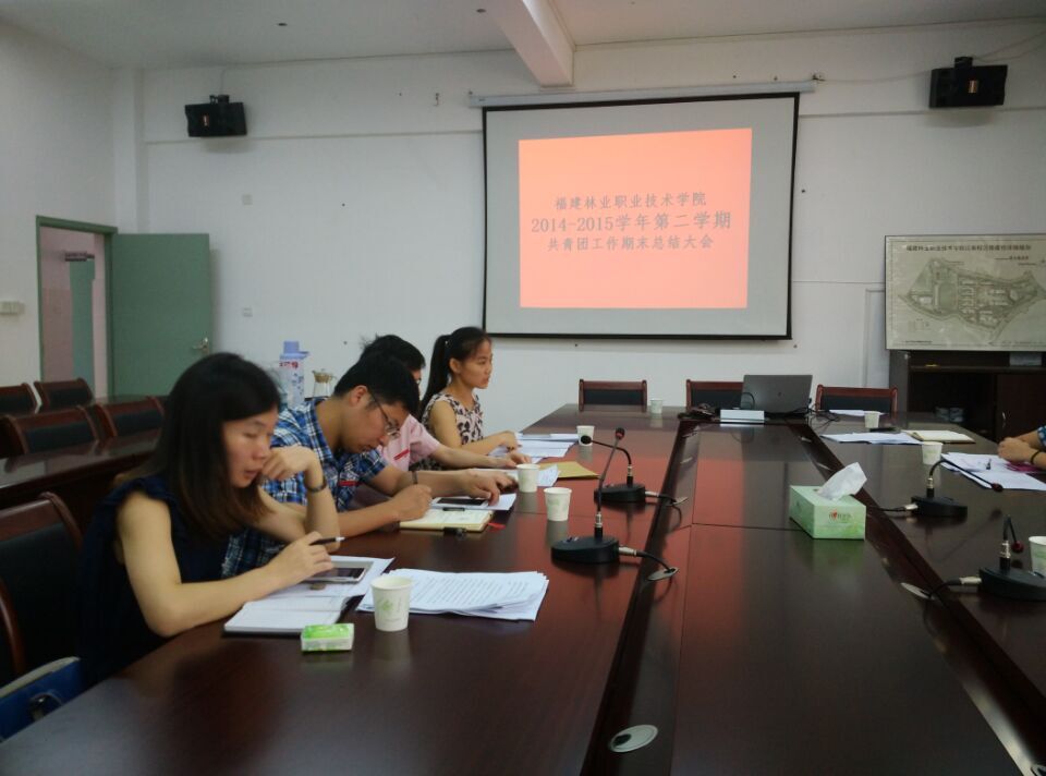 2015年7月10日上午10点,院团委在江南校区实训二5楼召开2014-2015学年第二学期共青团工作期末总结大会,各系团工作负责人及团委委员参会,会议由团委副书记李霞主持。