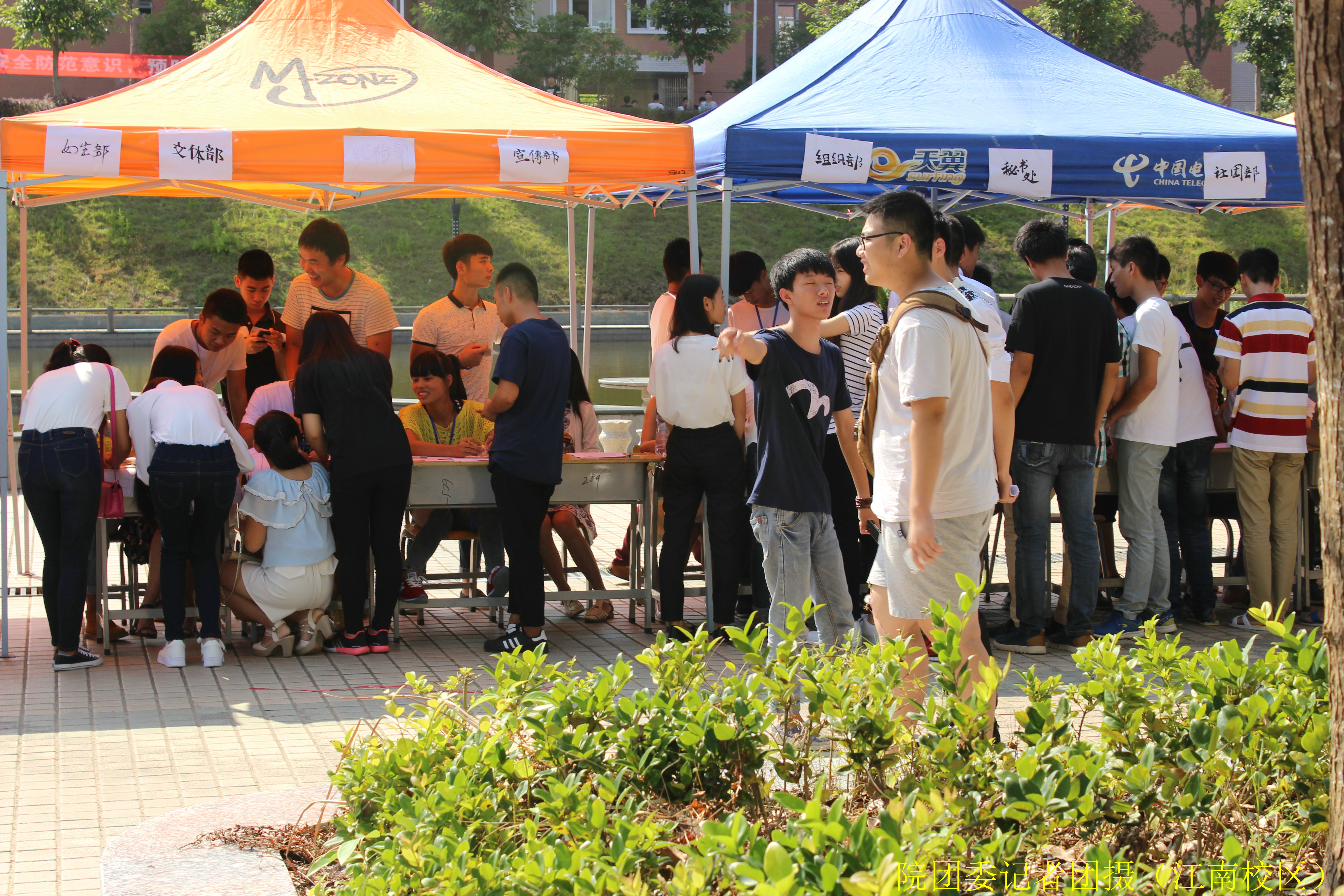 9月15日下午2点30分,烈日炎炎。我院在江南校区、天麟校区同时举行了两委会及各系学生分会面对2015级新生的纳新活动。再大的太阳,也抵挡不了学长学姐招贤纳士的热情,各部门对于纳新工作都安排得仅仅有序,自信满满,在这眼光明媚的好天气里两委会及各系学生分会纳新工作正式开始。以此给15级新生提供一个展示自我的实力的平台,发挥个人专长,充实我院两委会的力量。