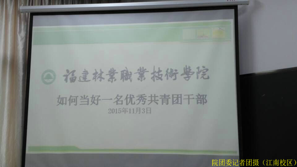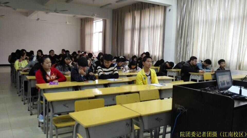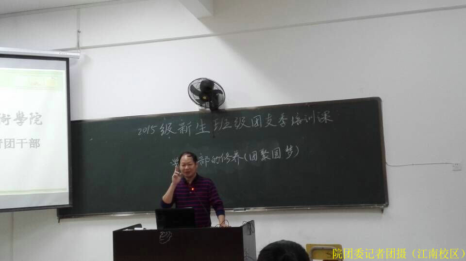11月3日下午2:30在江南校区实训四404开设了由院团委组织部主办的“2015级新生班级团支委培训课”。课程分成两节,第一节是由郭先根老师开讲的“学生干部修养”;第二节是李霞老师开讲“班级团支部工作规范”。听讲的有15级新生各班级的团支书、组织委员和宣传委员以及组织部干事。