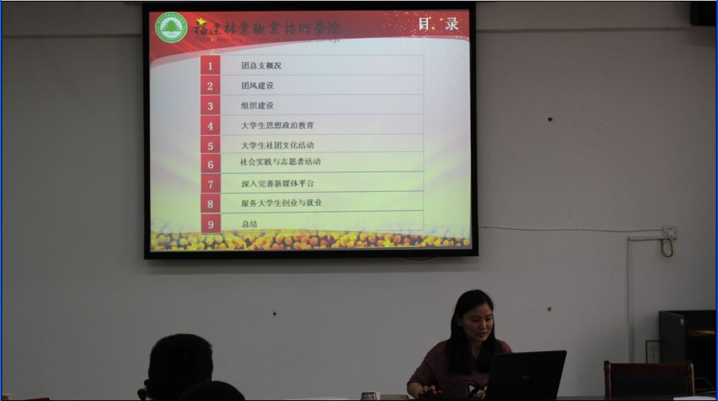 各系团总支负责人分别结合本系共青团工作实际,从组织建设、思想政治教育、科技文化艺术活动、学生社团建设、社会实践与青年志愿者活动、服务大学生就业创业等六个方面简要汇报了过去一年的团务工作。
