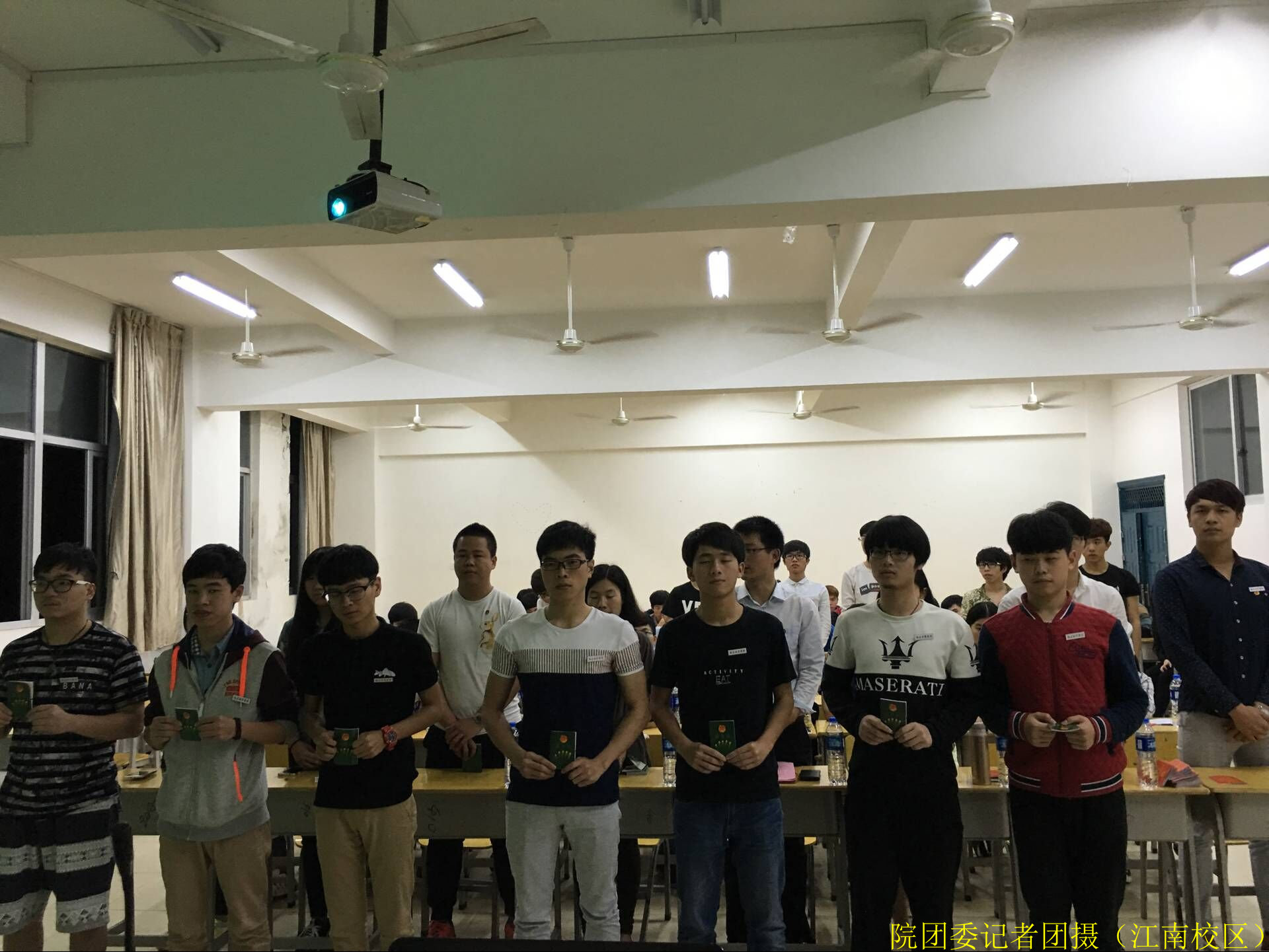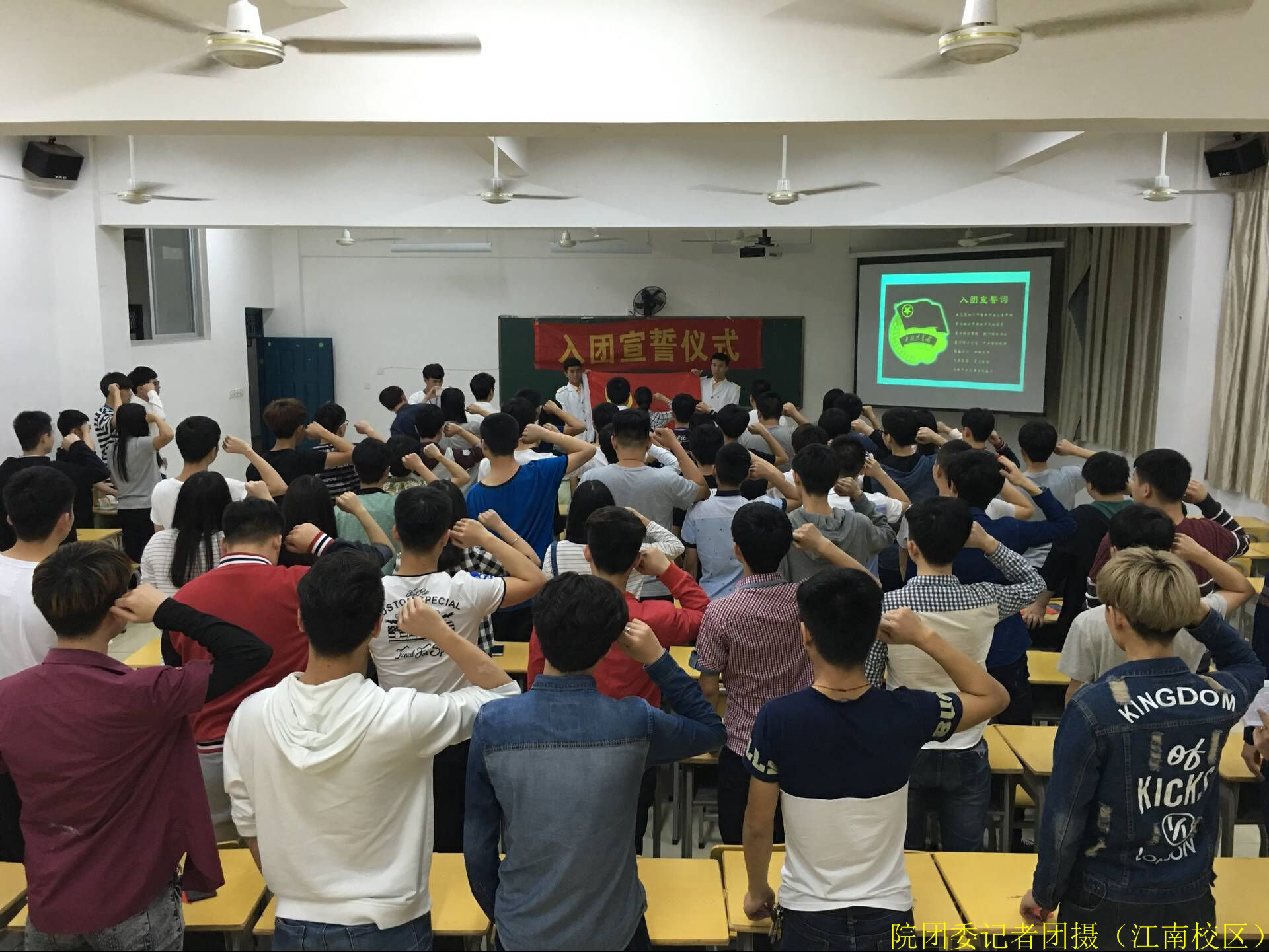 2016年4月20日晚上7点,院团委在江南校区实训四410举行了2015-2016学年第二学期入团宣誓仪式。团委叶新颖老师、交通工程系陆晓莉老师、园林系廖素梅老师出席了此次仪式,出席此次仪式的还有老团员代表团委副书记郭小玲同学、建筑工程系金延坚同学、交通工程系林晓波同学、林学系曾冬梅同学、园林系许志旭同学、中职部学生会主席许雯烨同学以及46名新发展团员。