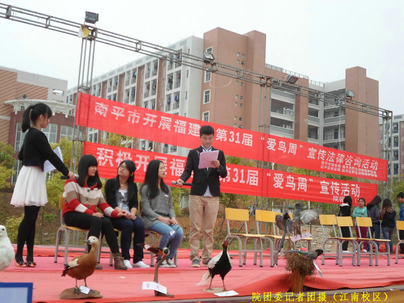 阳春三月,鸟语花香,3月31日上午9点整,福建省第三十一届“爱鸟周”活动在我院江南校区篮球场举行。本次活动由共青团福建林业职业技术学院委员会、南平市延平区林业局主办,院社团部、院组织部和绿色环保协会承办。