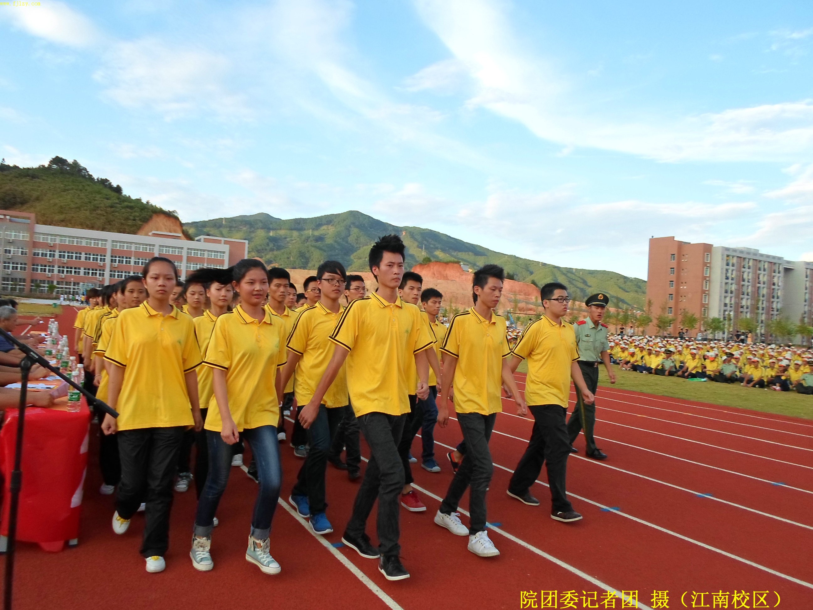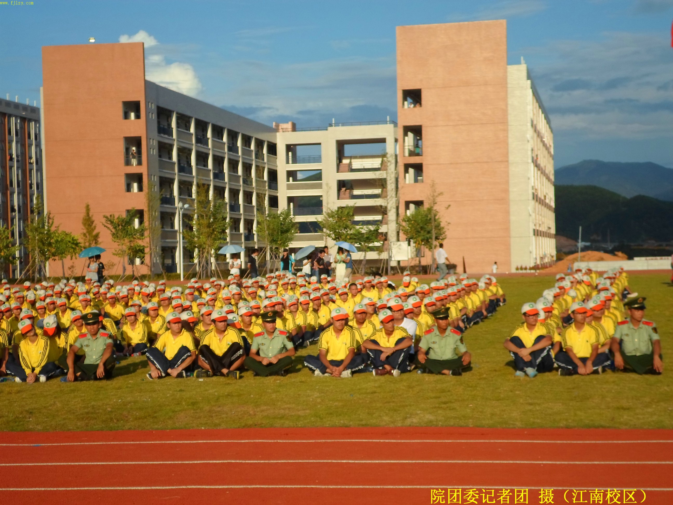 2013年9月13日下午五点,我院江南校区在后操场举2013级新生军训汇报表演。武警部队南平市森林支队副参谋长刘德成同志,武警部队南平森林支队南平大队教导员张才宝同志,学院纪委书记章志勇老师,学院副院长王振亮老师,学院院长助理、学生处处长郭先根老师,人文社科系主任、党总支书记成榕老师,资源环境系党总支副书记姚平生老师,土木工程系党总支副书记王云彪老师,经济管理系党总支副书记张毅老师,自动化工程系教学秘书、学工组组长黄立靖老师,应邀出席并担任本次会操评委。