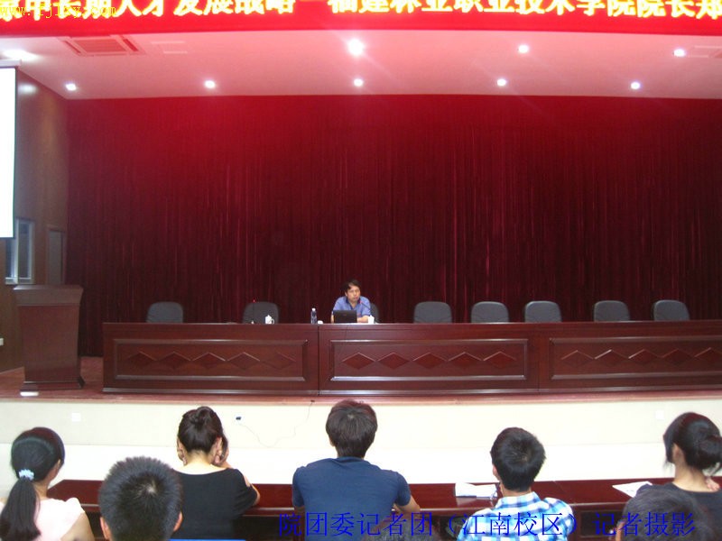 2013年9月25日晚7时,院长郑郁善教授在江南校区四楼会议厅开展《国家中长期人才发展战略》讲座,江南校区本科班学生和学生干部近400人到场聆听,讲座由资源环境系主任黄勤坚主持。