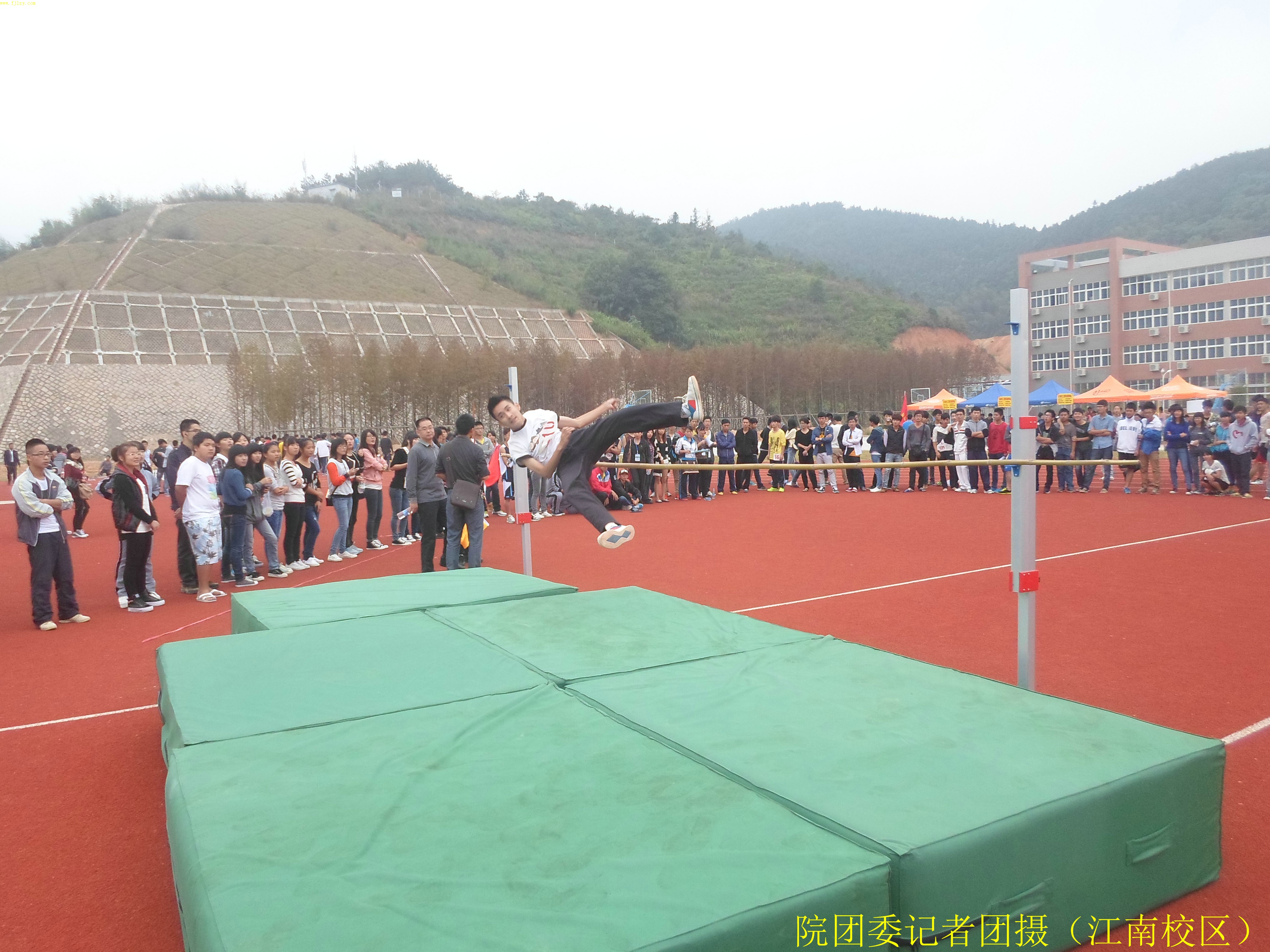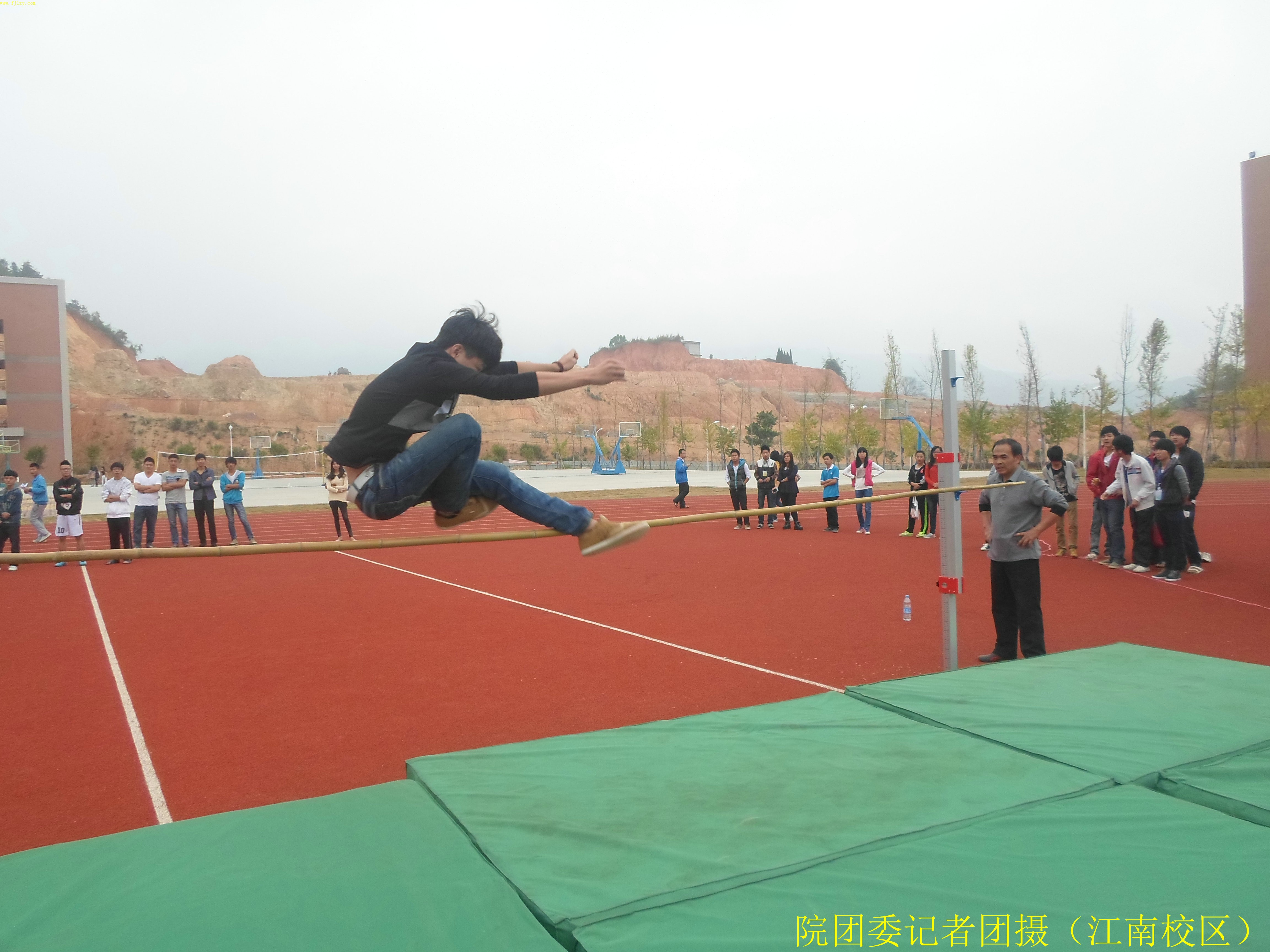 11月7日上午8点30分,男子跳高预决赛在我院江南校区田径场举行。共有46位同学积极参加比赛