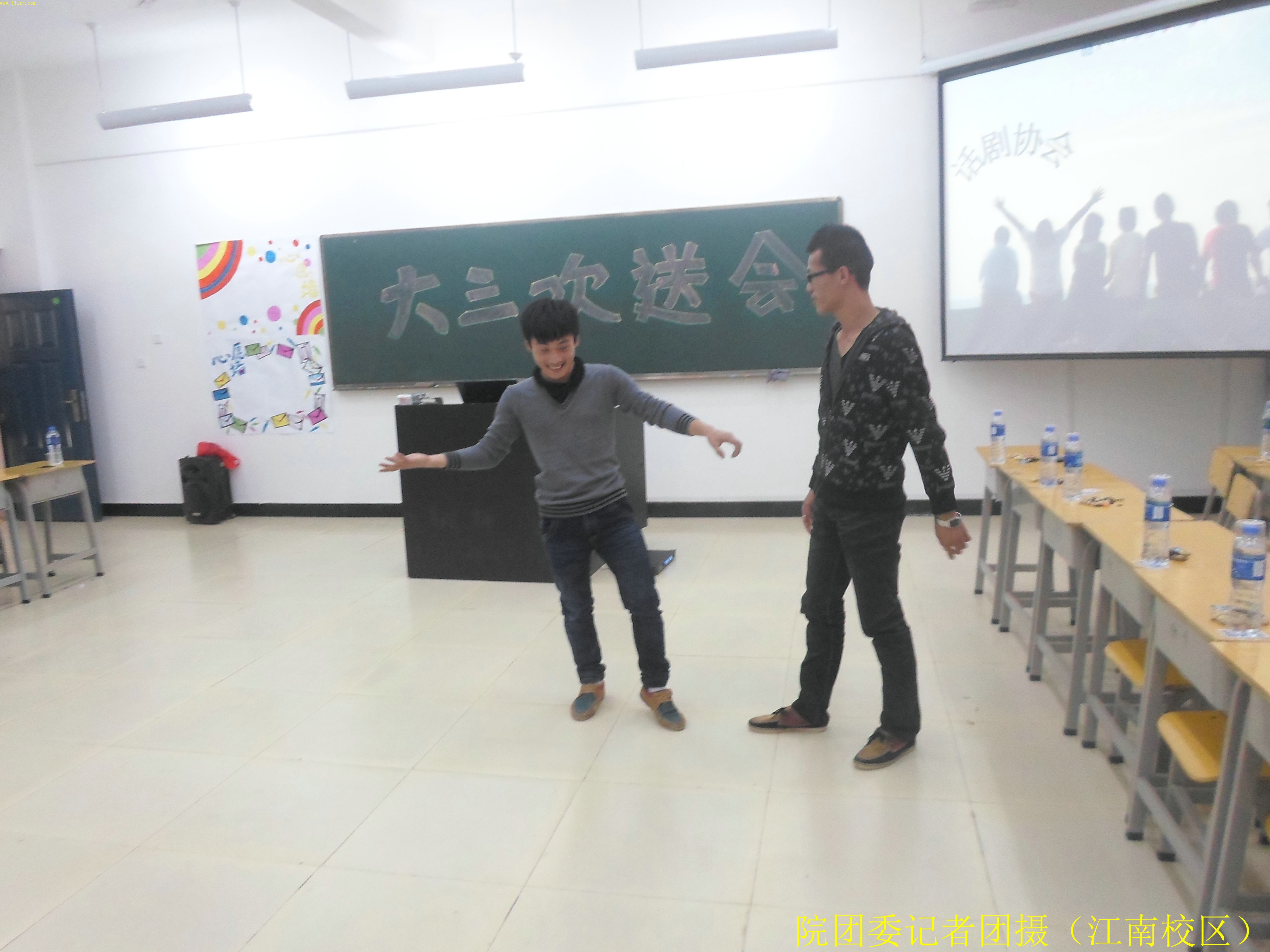 11月19日下午2点整,我院江南校区在实训四号楼410室举行院江南校区学生会、团委会两委会“大三欢送会”。出席此次活动的有院江南校区两委会各部门部长,干事及各协会会长。