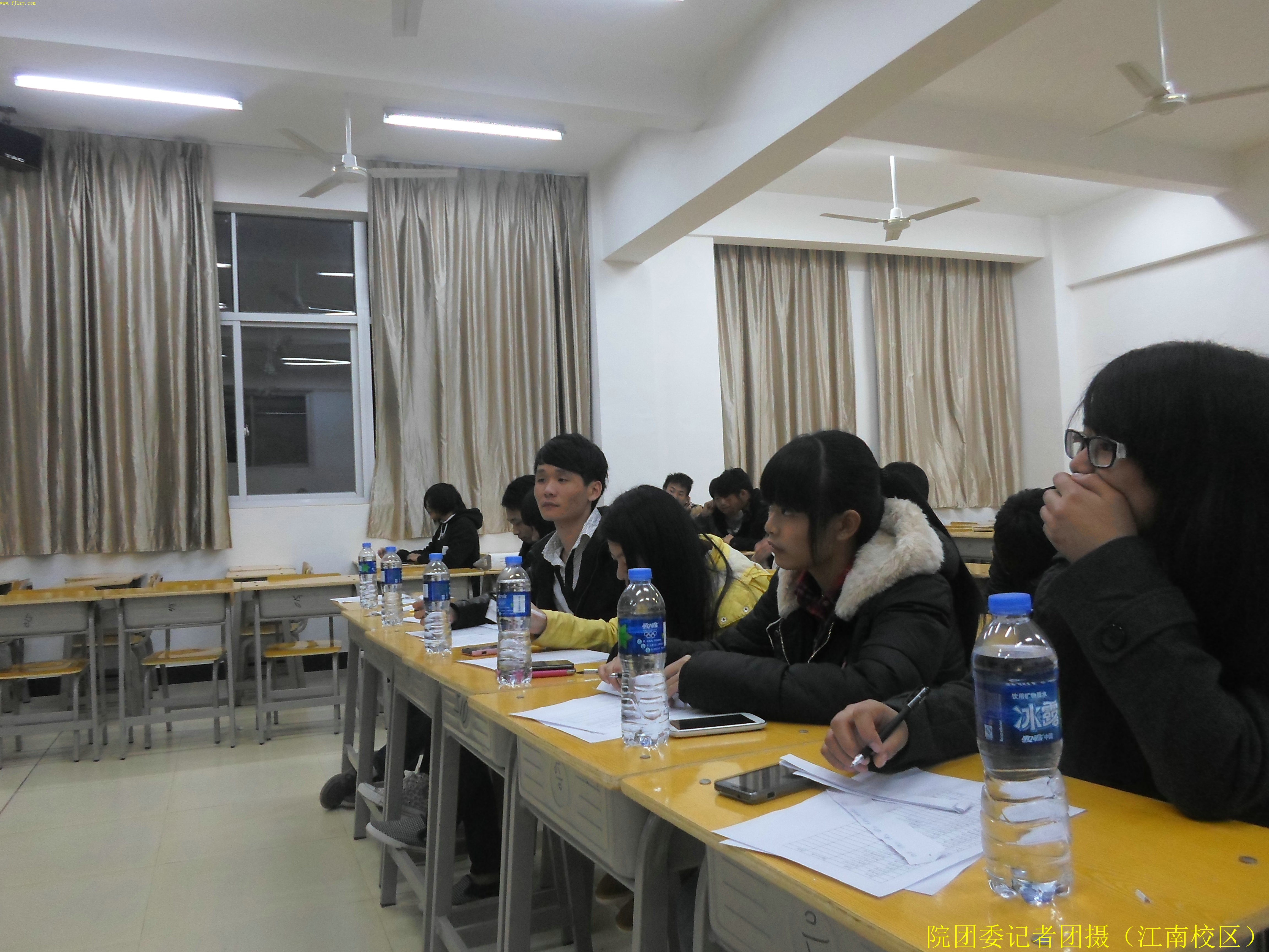 12月10日晚7点整,由院团委主办,院社团部快嘴协会承办的“主持人大赛”复赛在我院江南校区实训四510教室举行。本次江南校区复赛的评委由团委会、学生会部门负责人以及社团部协会负责人担任,本次比赛也吸引了众多同学前往观看。