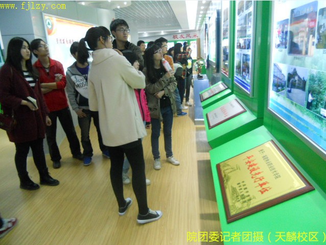 同学们在讲解员(旅游管理专业1206班同学)的带领下,认真参观,用心感受学院光荣历史,现场井然有序。同学们簇拥在讲解员的周围,聚精会神地聆听着学院的发展历程,仿佛置身于历史的长河,与前辈学长们共同书写着福建林职院的沧桑与辉煌。看到展板上的精彩内容,或者珍贵的实物档案资料,好多同学还拿出手机拍照记录、留念。