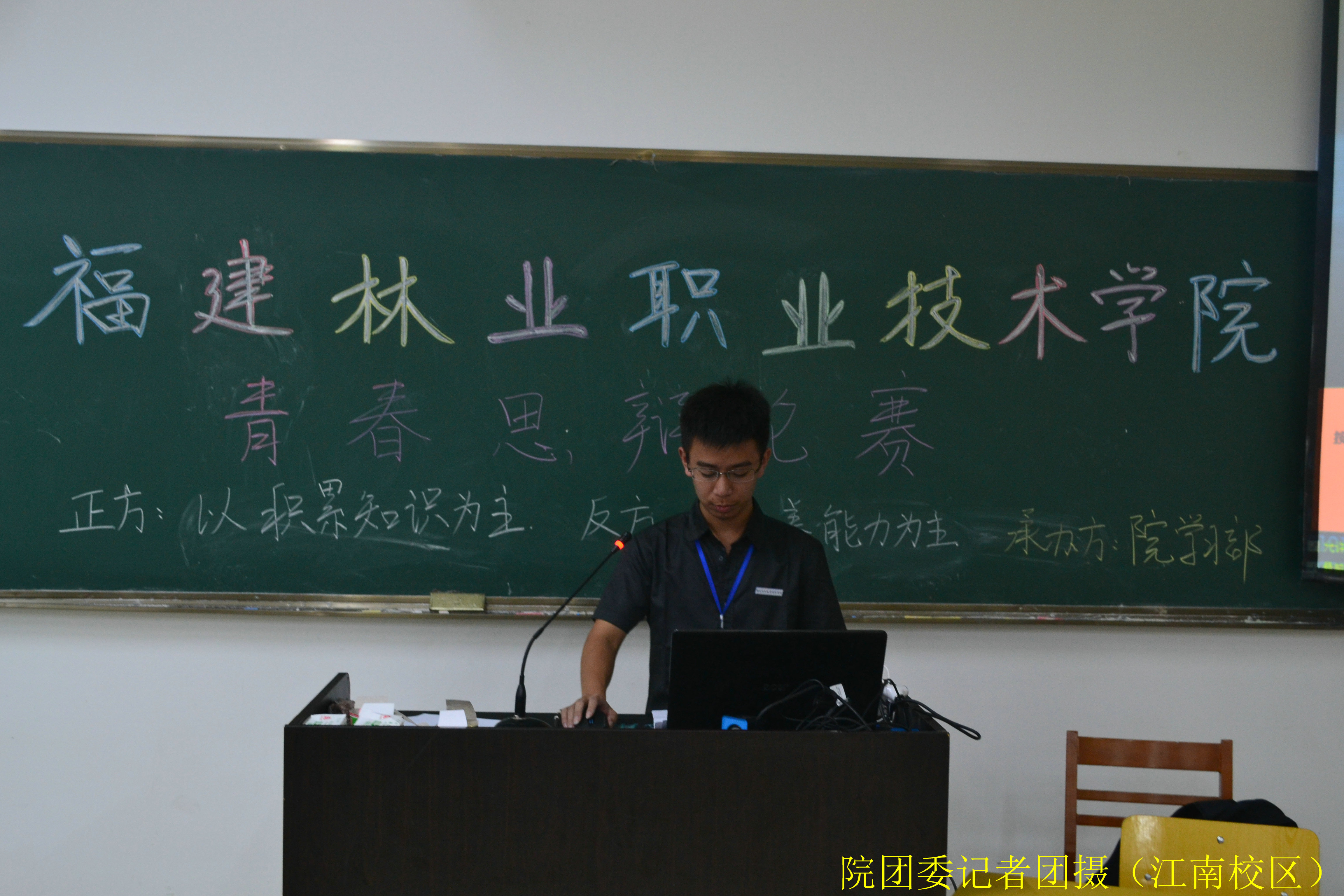 5月22日下午18点整,由院团委主办,院学习部承办的2014年“青春思辨”大学生辩论赛在我院江南校区实训四208室隆重开赛。本次比赛特别邀请了资源环境系辅导员王梦妮老师、土木工程系辅导员陆晓莉老师和园林系辅导员廖素梅老师作为评委。