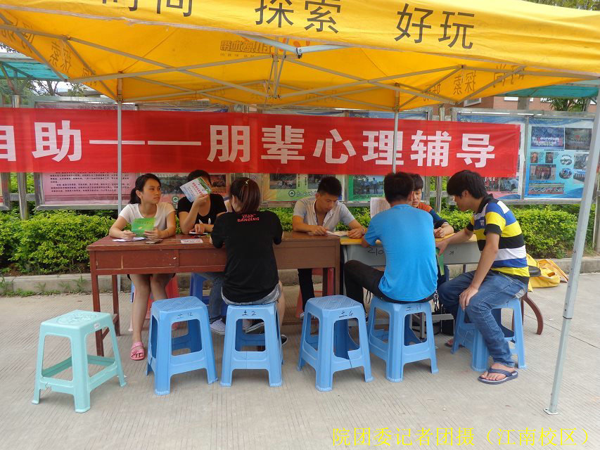 2014年5月24日下午三点至五点,由院团委、院学生处心理咨询中心主办,院社团部心连心协会承办的首届“大学生朋辈心理咨询驿站”在我院江南校区3-4#、5#学生公寓楼前举行,给大家提供了一次现场心理咨询机会。
