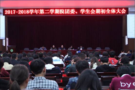 2018年3月6日下午15时,我院2017-2018第二学期团委、学生会期初干部大会在江南礼堂举行,学生处副处长、团委副书记李霞老师、学生处心理咨询中心陈红英老师、学生处吴旻老师、团委雷栩艺老师以及院团委、学生会全体成员近400人出席本次大会,大会由院团委黄晓宁老师主持。