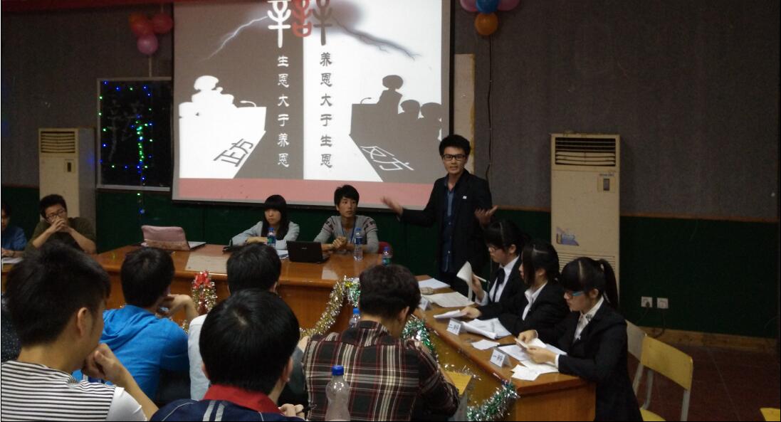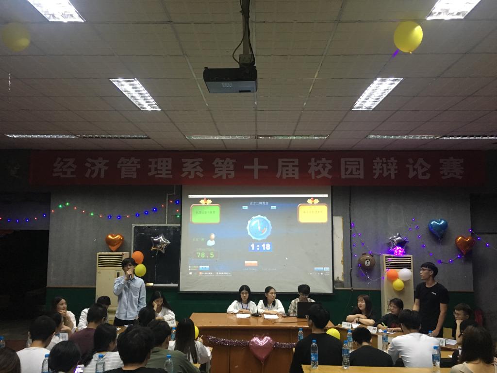 近日,经济管理系第十届“辩世事,论真理”校园辩论赛在天麟校区第一多媒体教室举办。经过一个月初赛、复赛的激烈角逐后,共有4队组合脱颖而出,进入本次辩论赛决赛。本次辩论赛旨在加强学风建设,促进各班学风交流,丰富同学课余生活,活跃校园气氛,开拓同学思路,体现大学生风华正茂的精神状态。