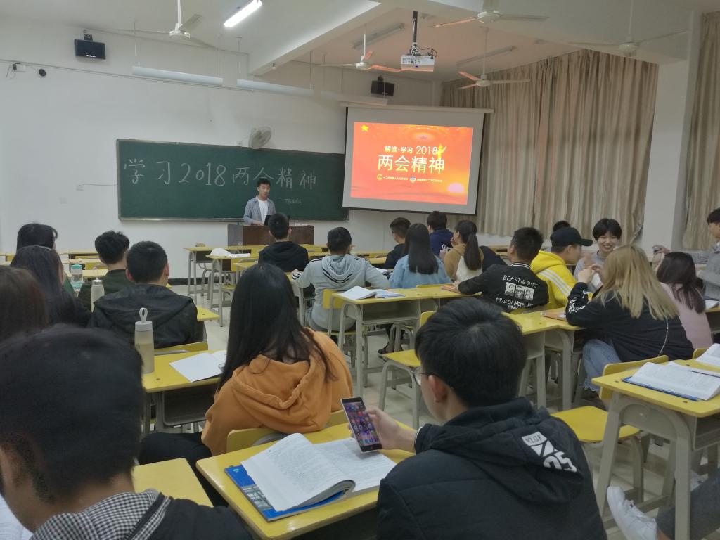 踏着轻快的步伐,备受全国瞩目的2018年全国两会正向我们走来。一年一度的全国两会是党和国家政治生活中的一件大事。由各班团支部组织班级同学学习2018两会精神,各班都进行得非常顺利,都更直观地了解和学习到了两会内容,对两会精神有了更深刻的了解。同时,我们一定要提高政治站位,精心做好参加全国两会各项筹备工作,组织引导我区全国人大代表和住区政协全国委员会深入学习习近平新时代中国特色社会主义思想和党的十九大精神,深入思考贯彻落实中央精神的思路举措,为履行好代表、委员职责做好充分准备。