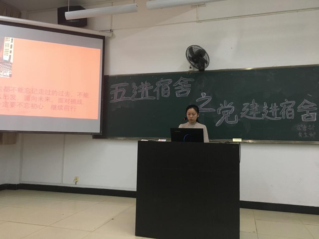 党建进宿舍工作的务实推进,有效拓展了思想政治教育阵地,带动了宿舍文化建设,营造出积极、健康、和谐、向上的文化氛围,有力推进了优良学风校风的形成。同时,增强了学生的责任意识和服务意识,发挥了自我教育、自我管理和自我服务的作用。希望今后同学们继续践行党的十九大精神,不忘初心,筑梦前行。
