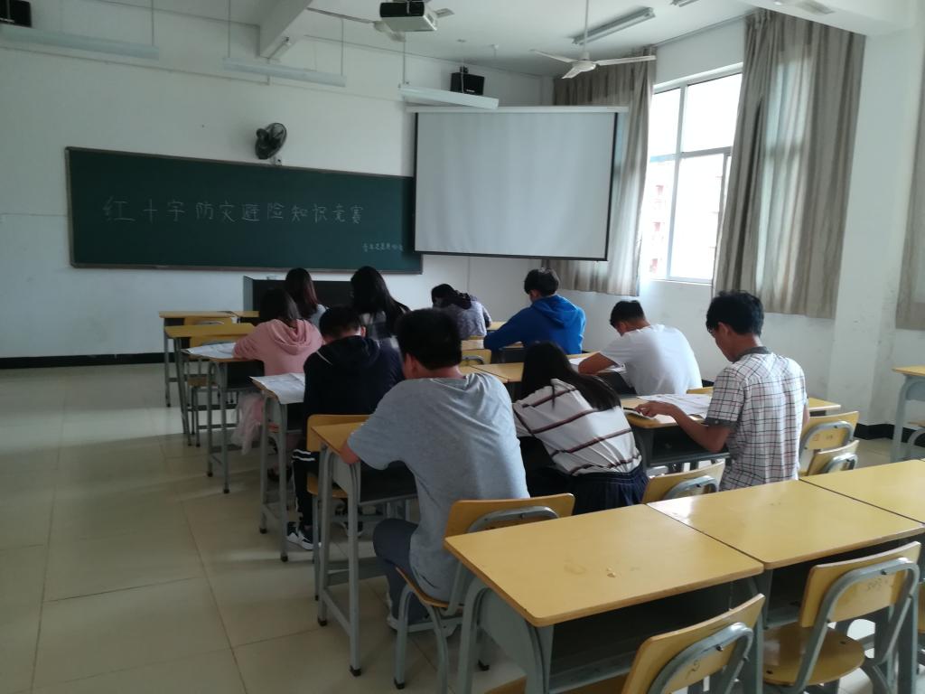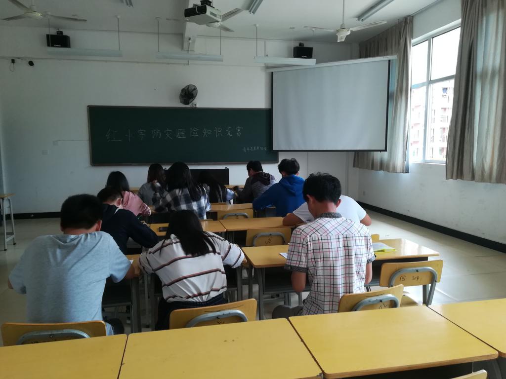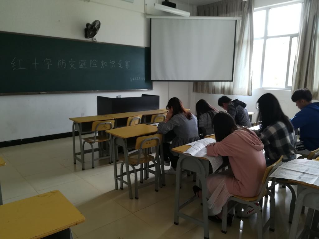 为了进一步普及防灾避险知识,增强广大学生的风险防范意识,提高学生的自救互救能力,我系青年志愿者协会全体成员于5月3号中午12点半在实训四302组织进行了防灾避险知识竞赛活动。