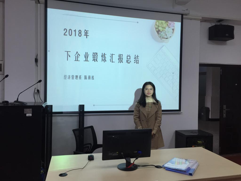 其次是2018年暑期教师下企业锻炼汇报总结活动。下企业锻炼教师分为两组,一组是叶丽丽和陈雨泓老师,锻炼企业是福建长富乳品有限公司;另一组是罗志斌、陈友益、周璇和宋李玉老师,锻炼企业是福建汇邦物流有限公司。本次汇报总结分组进行,下企业锻炼教师根据企业实践工作学习内容,进行了认真的总结反思,制作了成果汇报PPT,形成了专业调研报告。