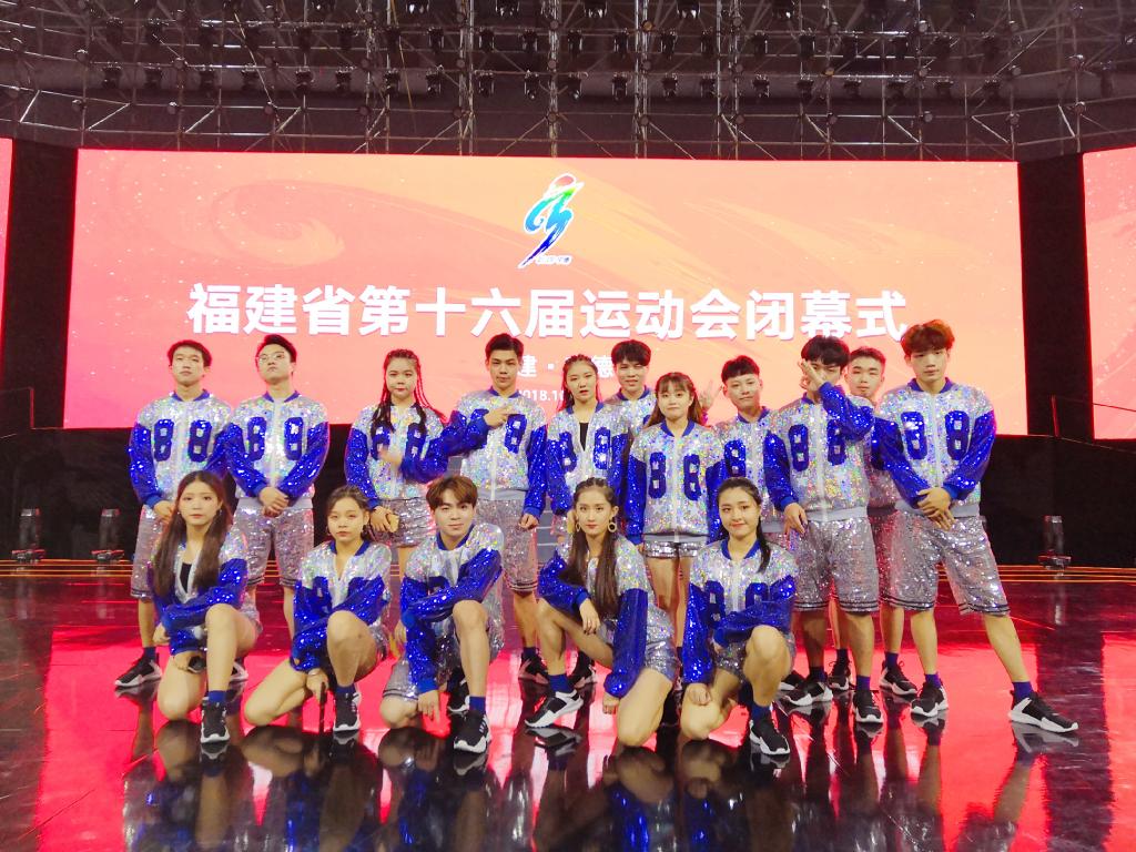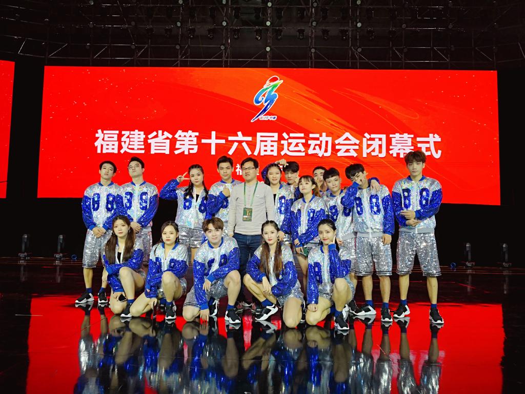 本网讯 10月27日下午,福建省第十六届运动会在宁德市圆满闭幕。闭幕仪式上,南平市市长刘洪建代表下一届省运会东道主,从副省长杨贤金手中接过省运会会旗,由此拉开了2022年福建省第十七届运动会的序幕。为向全省各地市人民发出热情邀约,在闭幕式上,南平市倾情奉上了一场“南平八分钟”——《大美南平盼您来》的城市形象展演。我院天麟艺术团爵士舞队、街舞队成员与南词艺术传承发展中心、邵武三角戏(傩舞)民俗文化研究中心、建瓯市挑幡艺术团、南平市轮滑协会等单位演员共同参与了本次演出,并出色完成了街舞单元的表演任务。