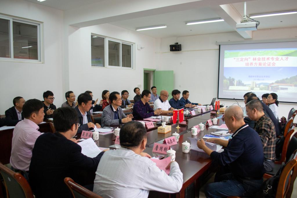 本次论证会议由叶世森副院长主持,出席本次论证会的专家有福建师范大学李宝银教授、省森林资源管理总站洪端芳站长、福建林业局人事处郑丽婵副处长、省森林资源管理总站齐清琳副站长、林业职业技术学院万泉院长、副院长严绍裕、省林业规划院的施恭明副总工、陈铭潮主任、三明林业学校范繁荣博士、福建省生态工程学校聂荣晶高级讲师副校长以及南平市、三明市、龙岩市三地(市)森林资源管理站的叶小瑜站长、詹国明站长、邱文金站长、林学系主任廖建国以及林学系林业技术专业专任教师。
