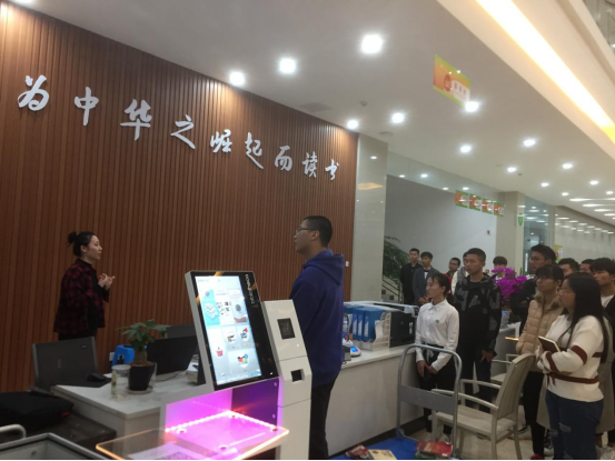 张老师首先带领大家按由外到里、由低到高的顺序进行参观,向同学们展示了馆舍风貌,详细介绍图书馆的概况、规章制度、功能分区、书籍摆放位置、报刊分类、馆藏书刊检索,同时演示如何正确借阅、归还书籍。