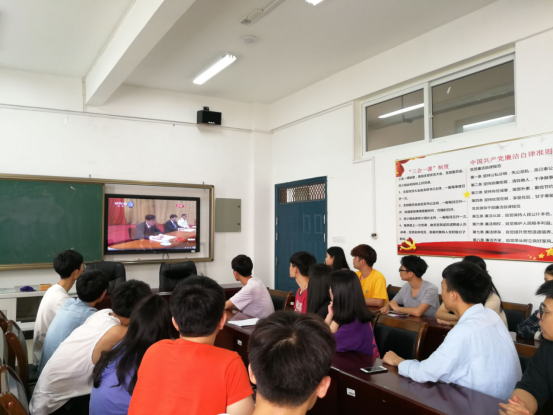 4月30日上午,纪念五四运动100周年大会在人民大会堂举行,中共中央总书记、国家主席、中央军委主席习近平出席大会并发表重要讲话,我院团员青年第一时间收看大会,认真学习习近平总书记重要讲话。院党委书记万泉老师到场和团员青年们共同收看了大会直播盛况,各系团总支也同步组织收看。