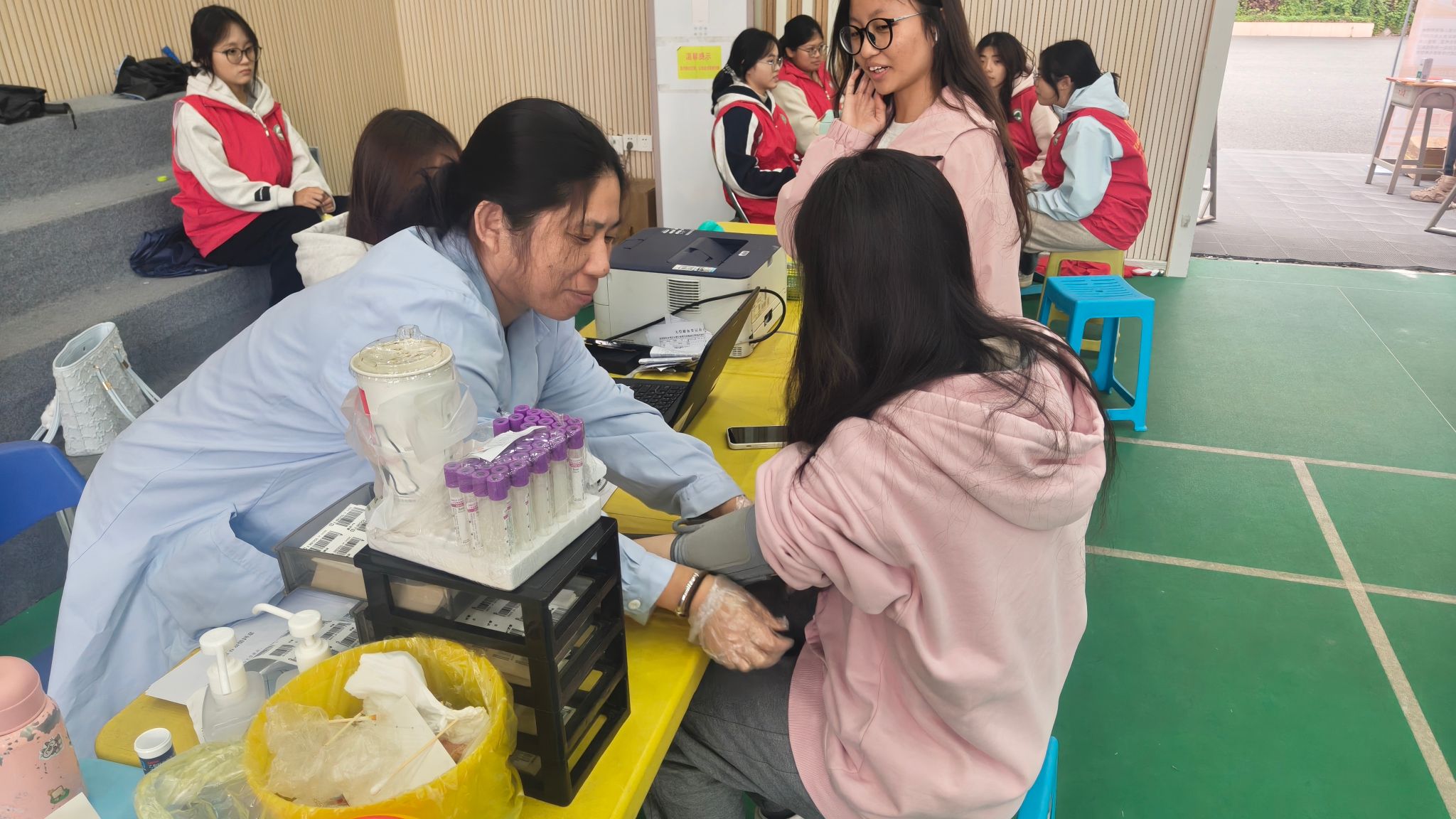 2025年11月18日,南平市中心血站携我院红十字会学生分会,在天麟校区礼堂门口开展了无偿献血公益活动。
